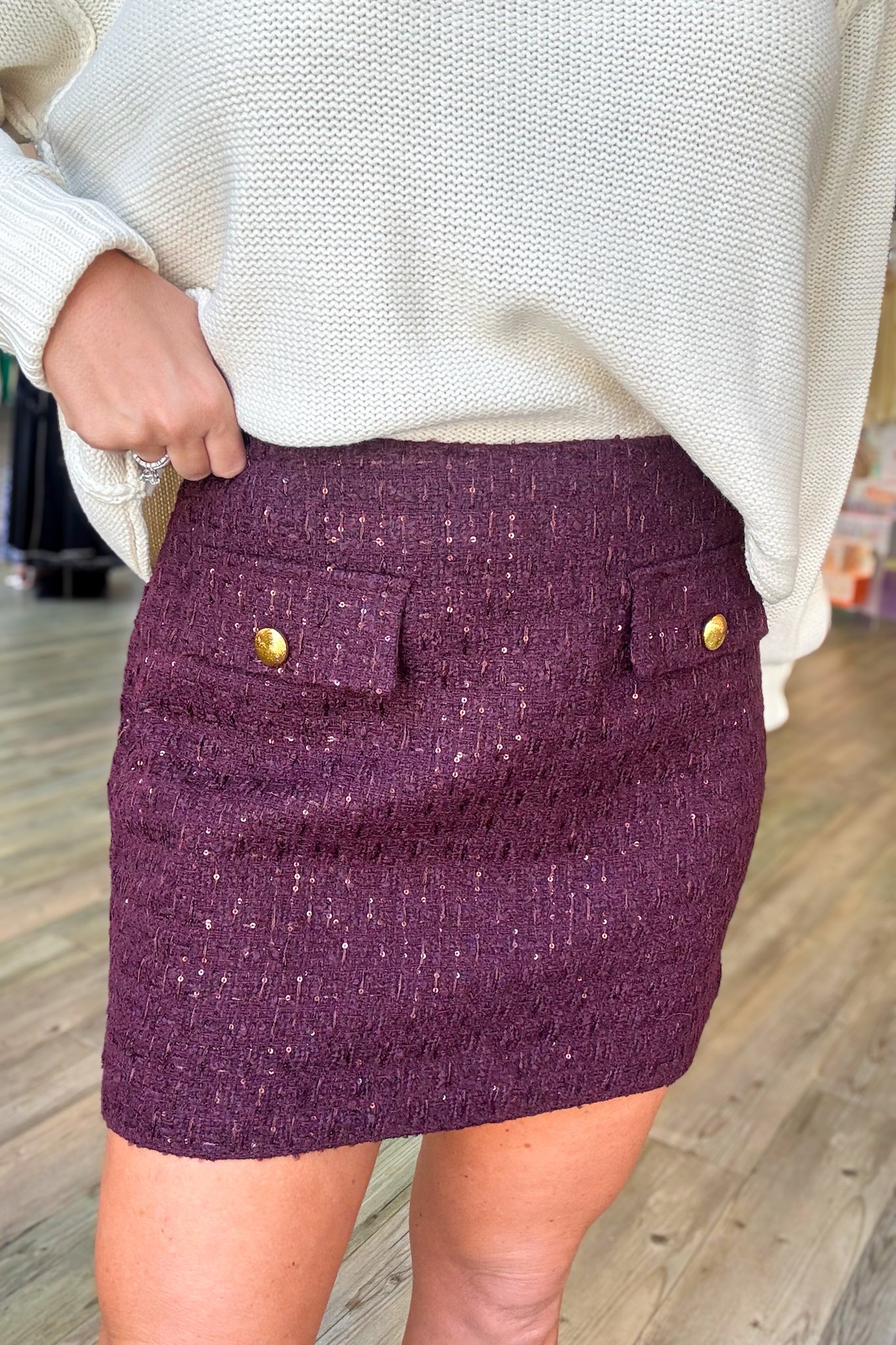 Merlot Tweed Mini Skirt