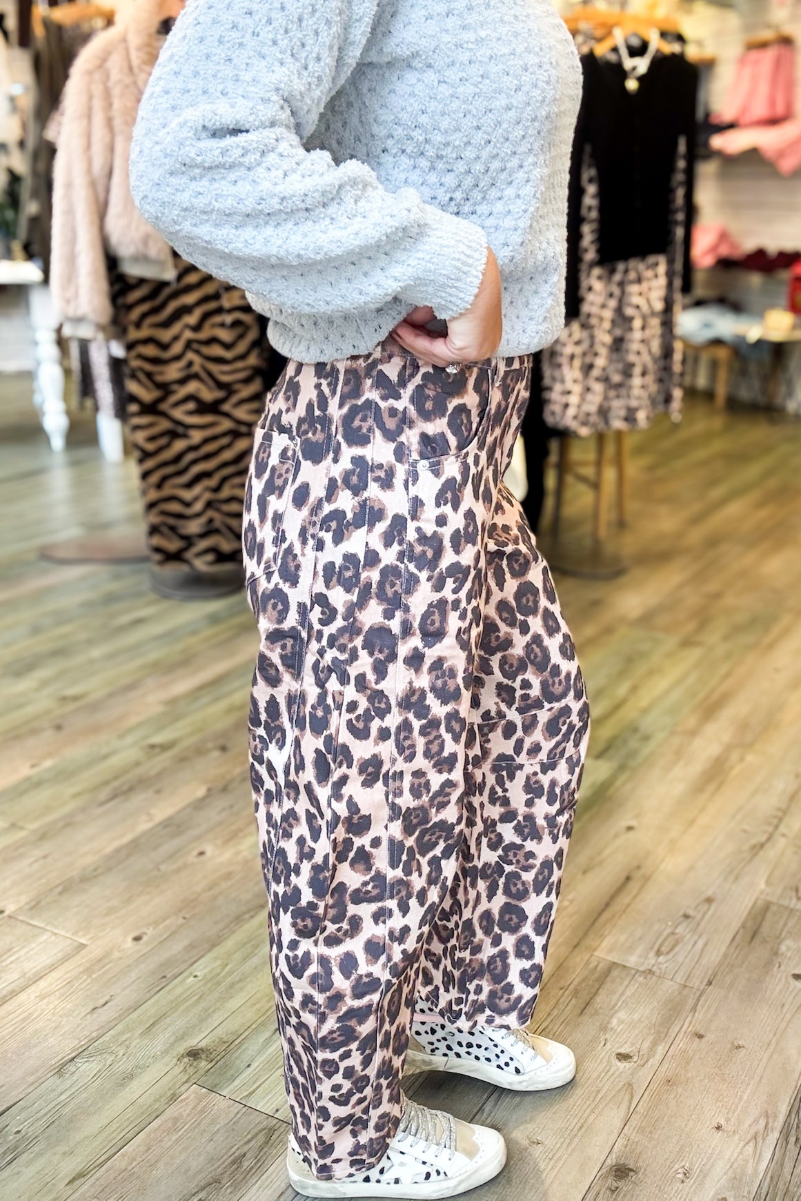 Leopard Denim Barrel Leg Jean
