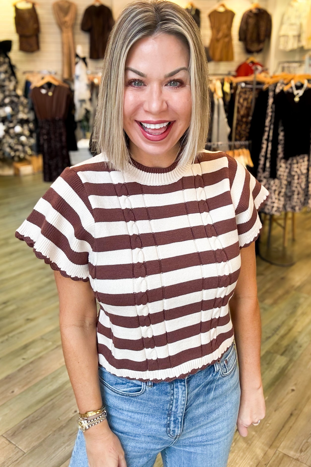 Nora Brown Short Sleeve Sweater
