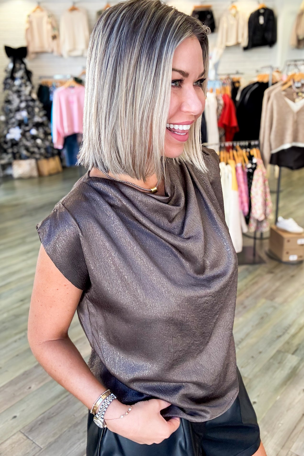 Mary Metallic Cinched Top