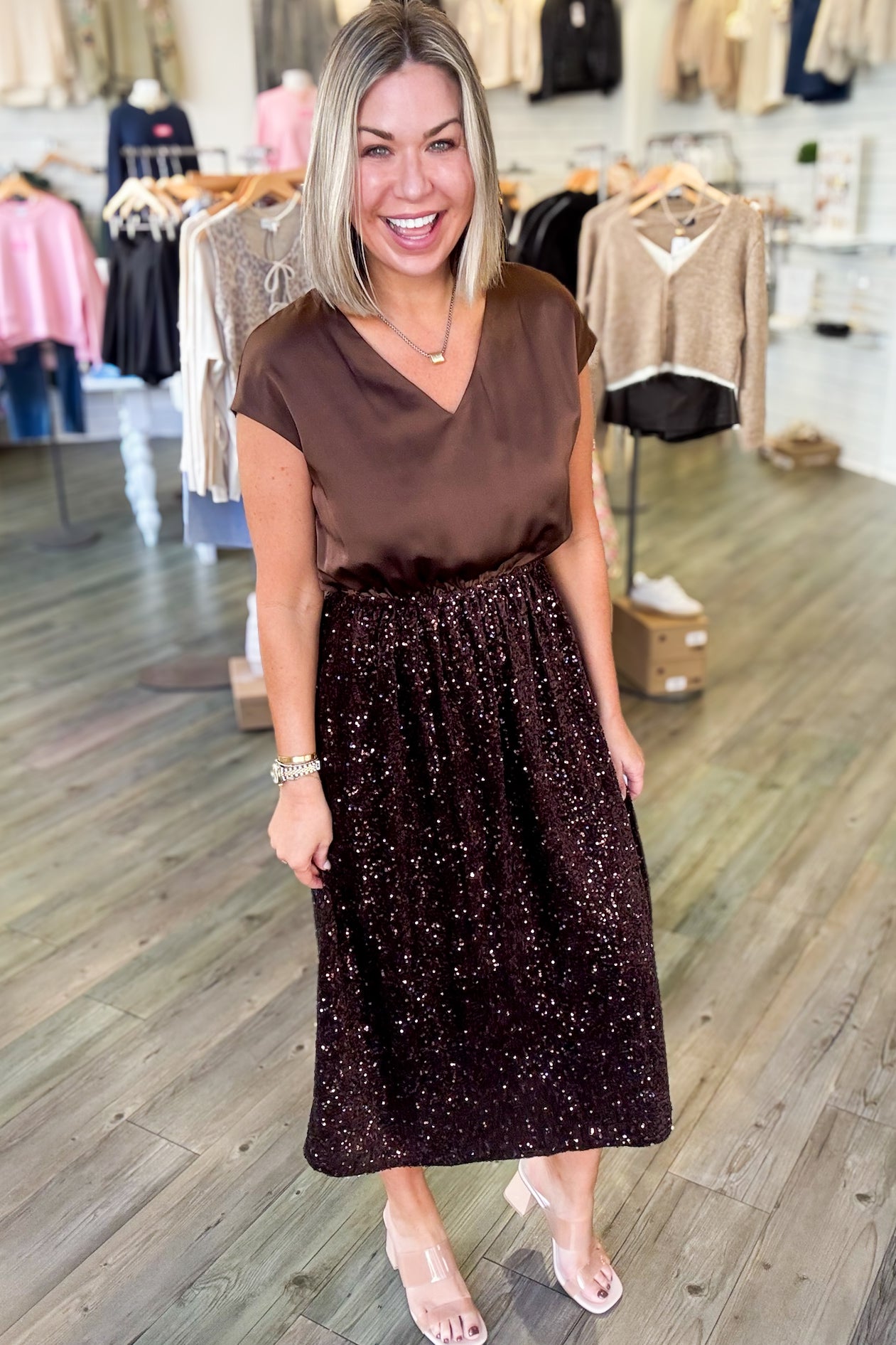 Mitzi Bronze Sequin Dress