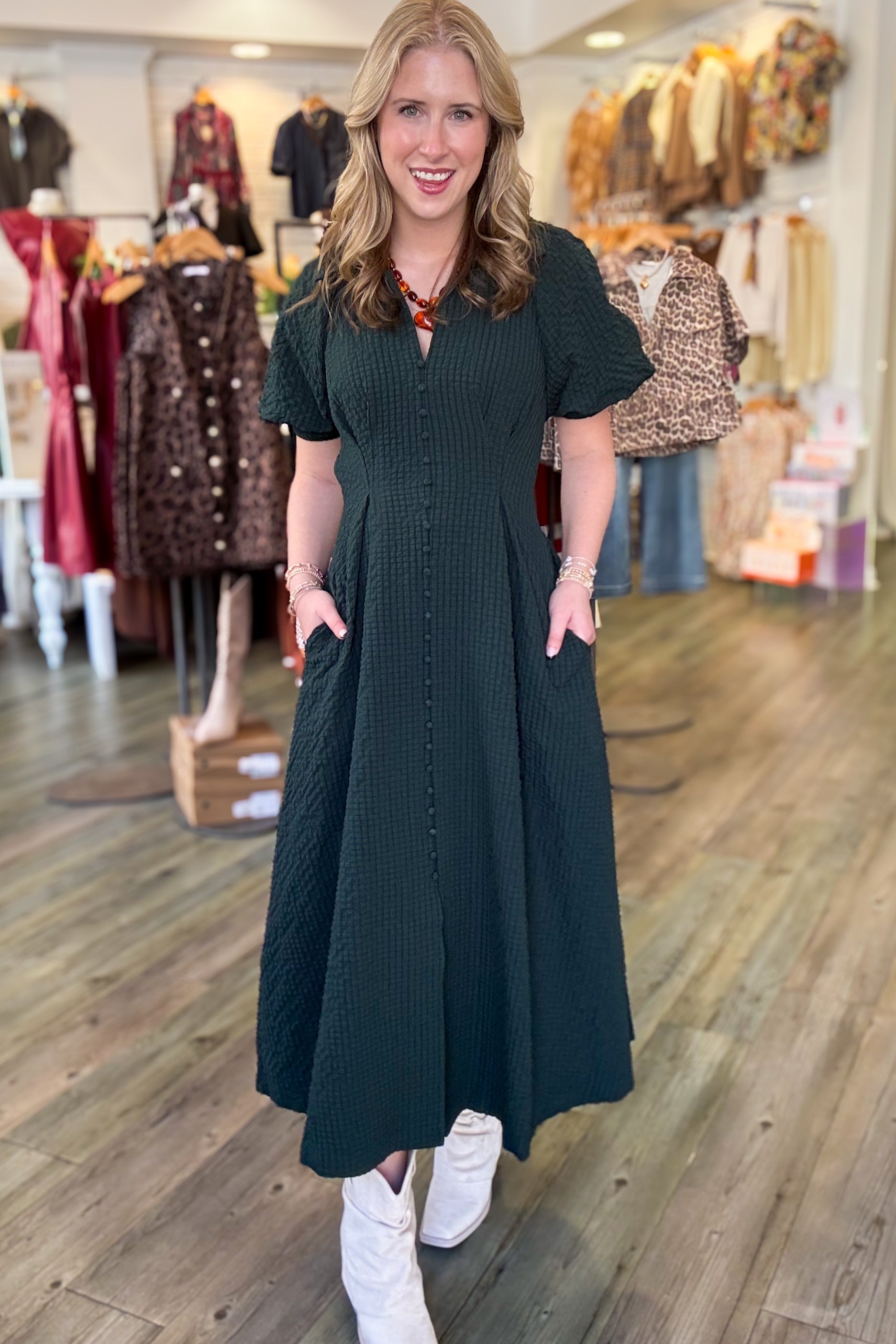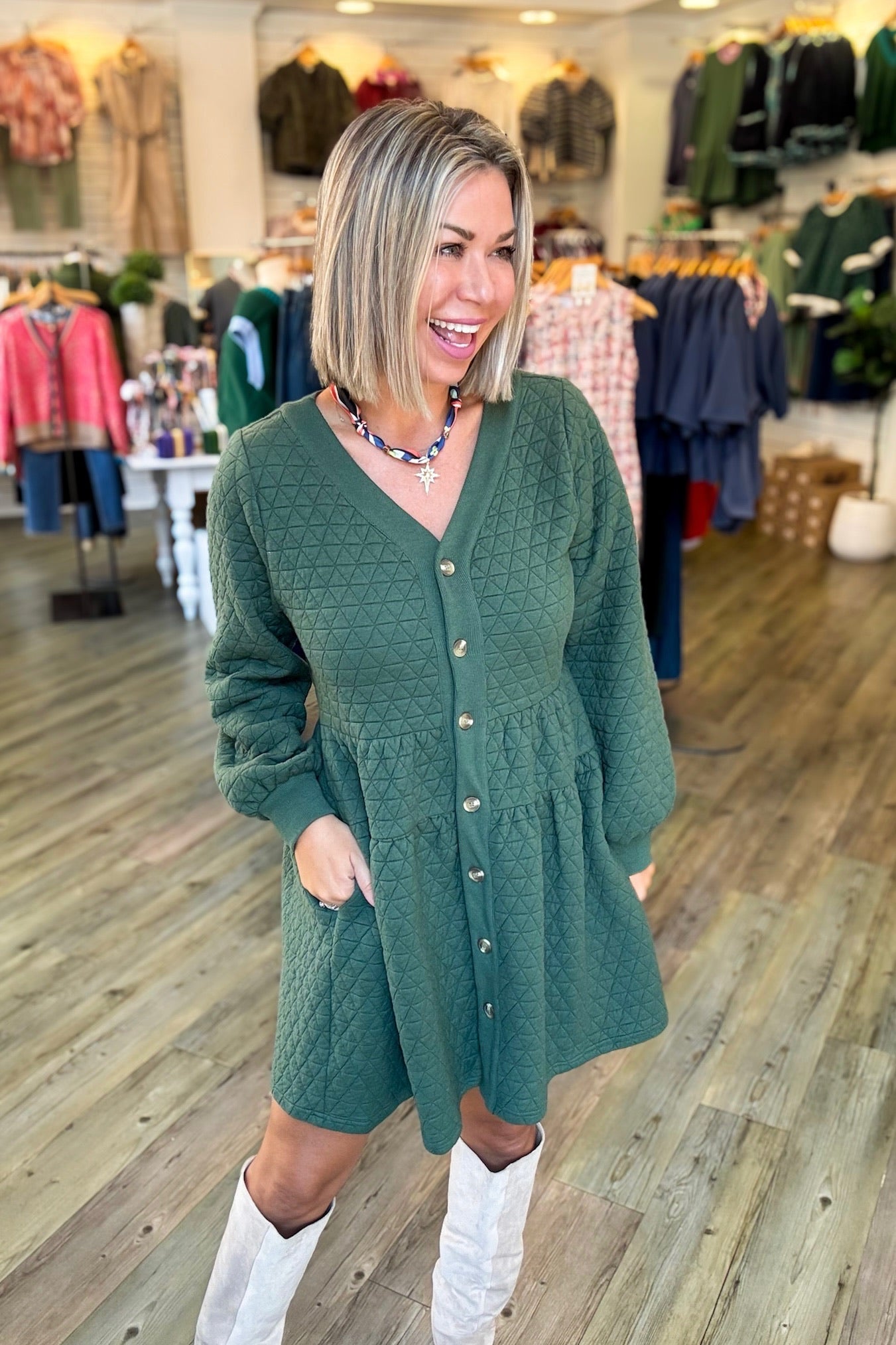 FOREST GREEN QUILTED DRESS