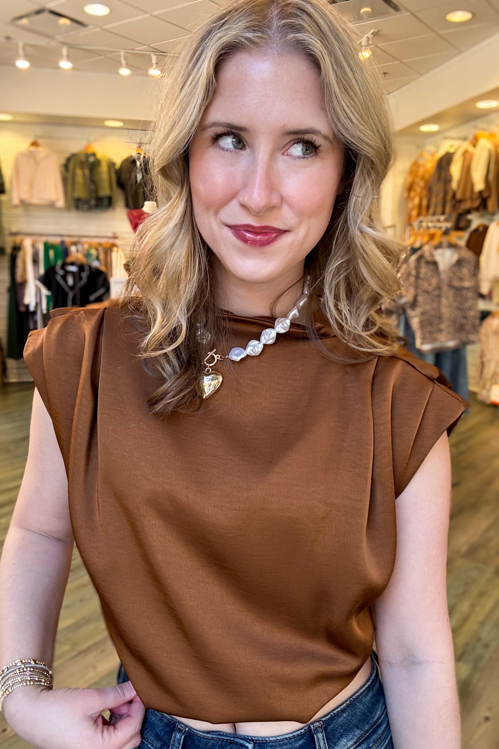 Jen Camel High Neck Top