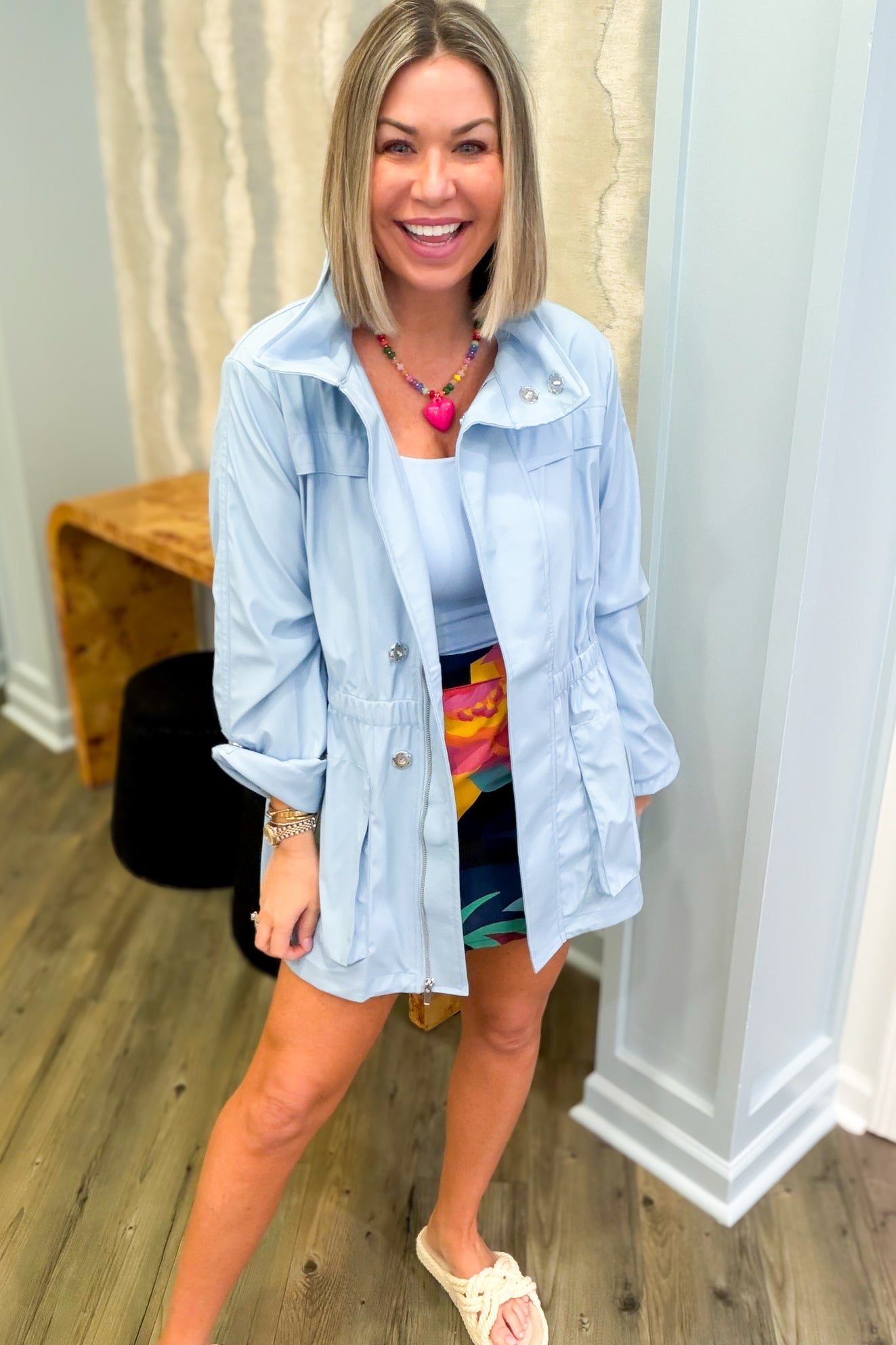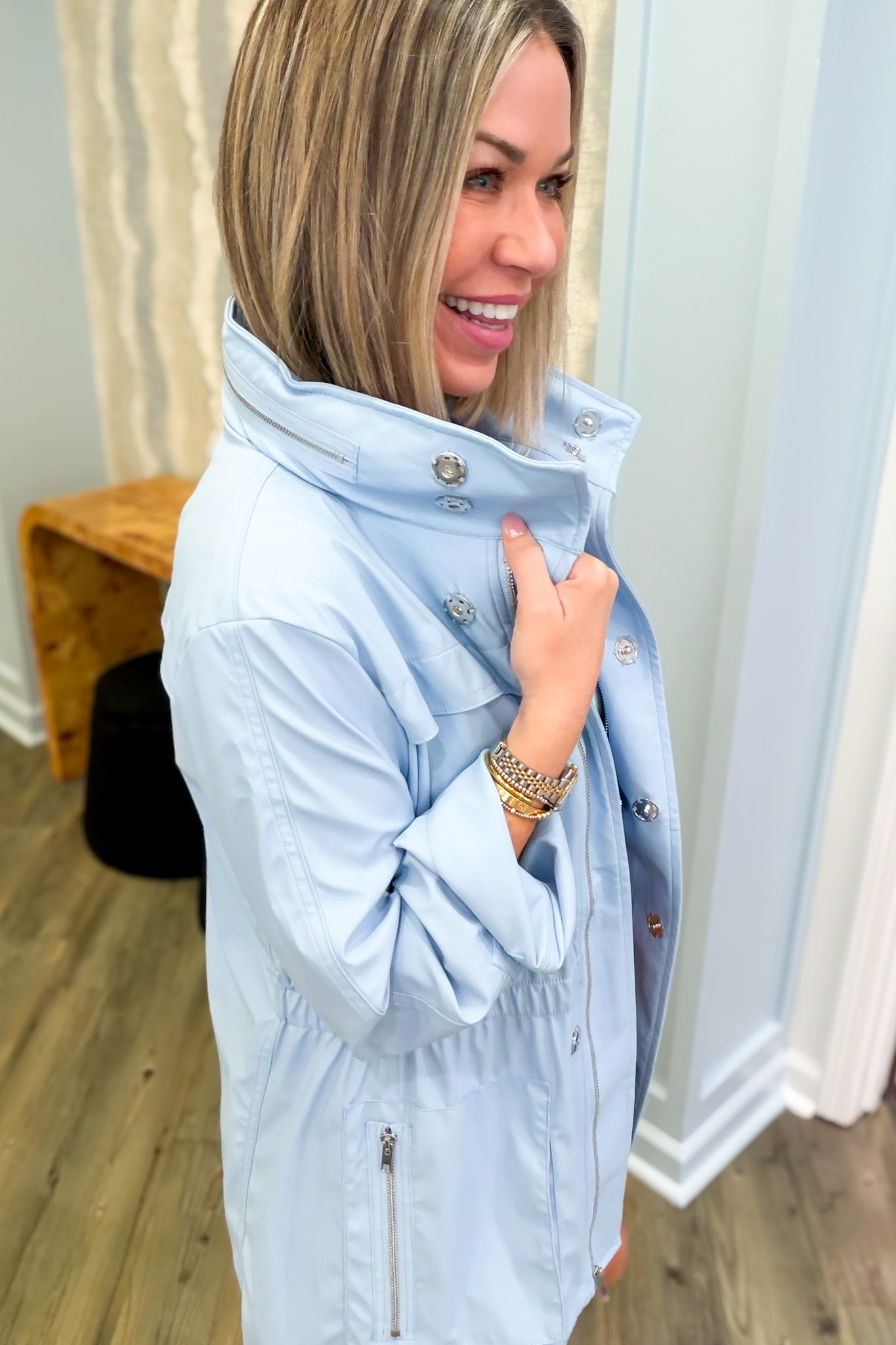 New fabric developed by Ciao Milano. Soft durable flowing fabric that is not only 100% water proof but extremely rich looking. Looks like a million dollars. Same style, hardware, specs and fit with zip in pouch hood as the famous Tess style.