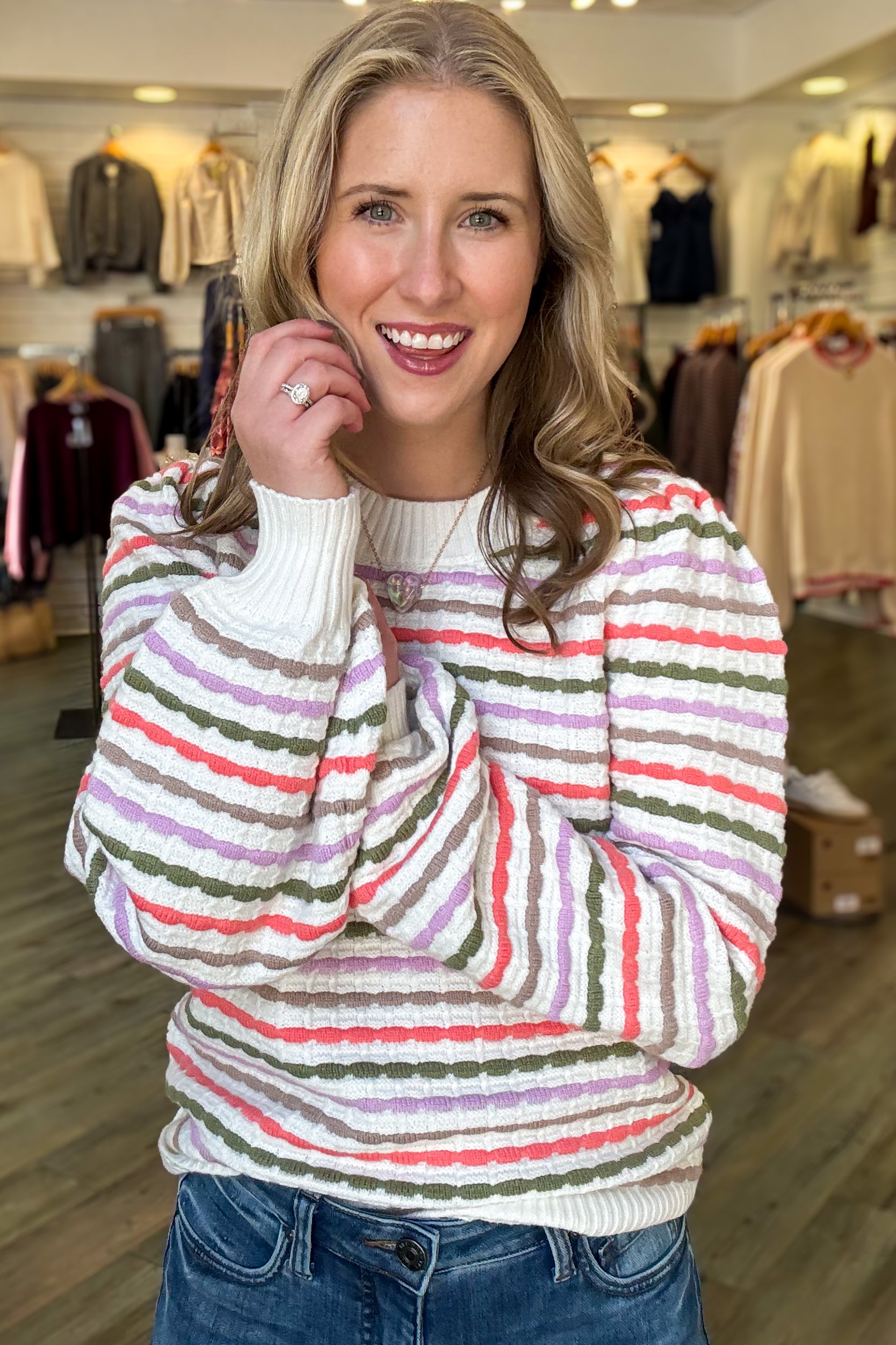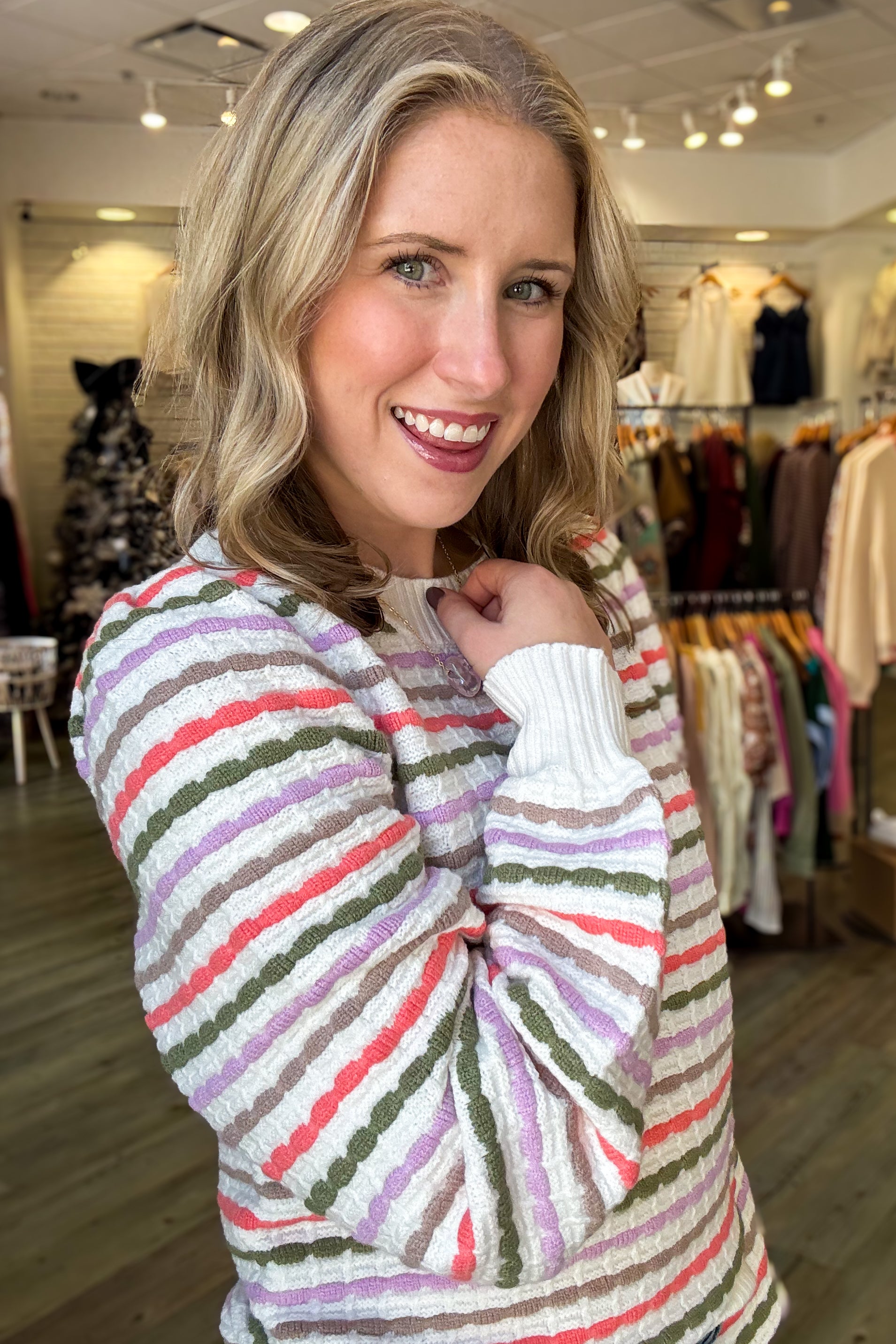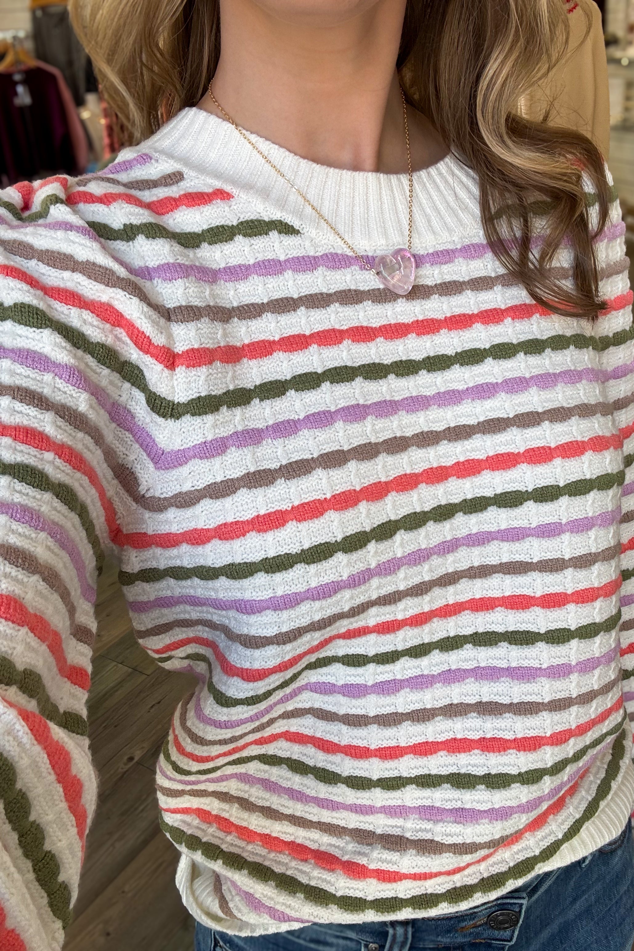 The Annabelle Sweater blends classic style with modern details. Featuring a crew neckline, subtle balloon sleeves with cuffs, and ribbed trim, it offers a cozy fit with a touch of effortless sophistication. Perfect for layering or wearing on its own, this sweater is a versatile addition to any wardrobe.