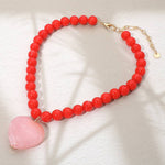 Chunky Marbled Resin Heart Charm Beaded Necklace: Pink