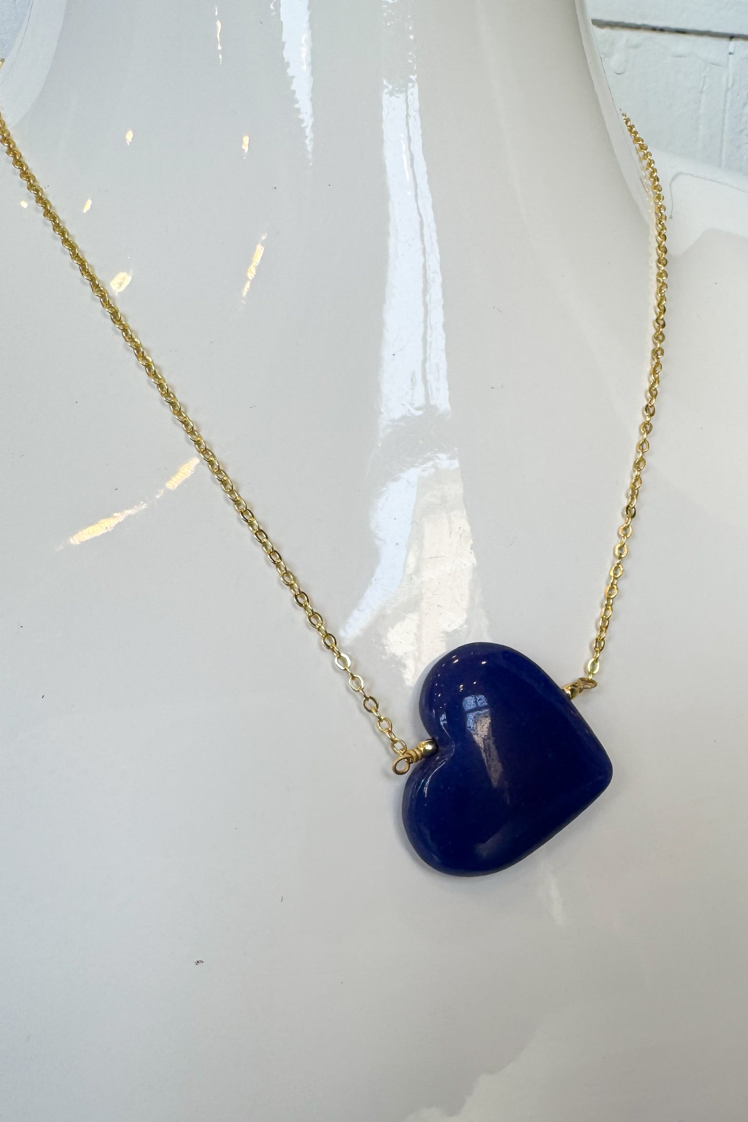 Wear your heart on your chain with this charming necklace featuring a vibrant colored heart stone pendant. The delicate gold chain pairs beautifully with the eye-catching heart detail, while a secure claw clasp keeps your treasure safely in place. Perfect for adding a pop of personality to any outfit, whether you're dressing up or keeping it casual. A sweet reminder to celebrate love—in all its colorful forms.