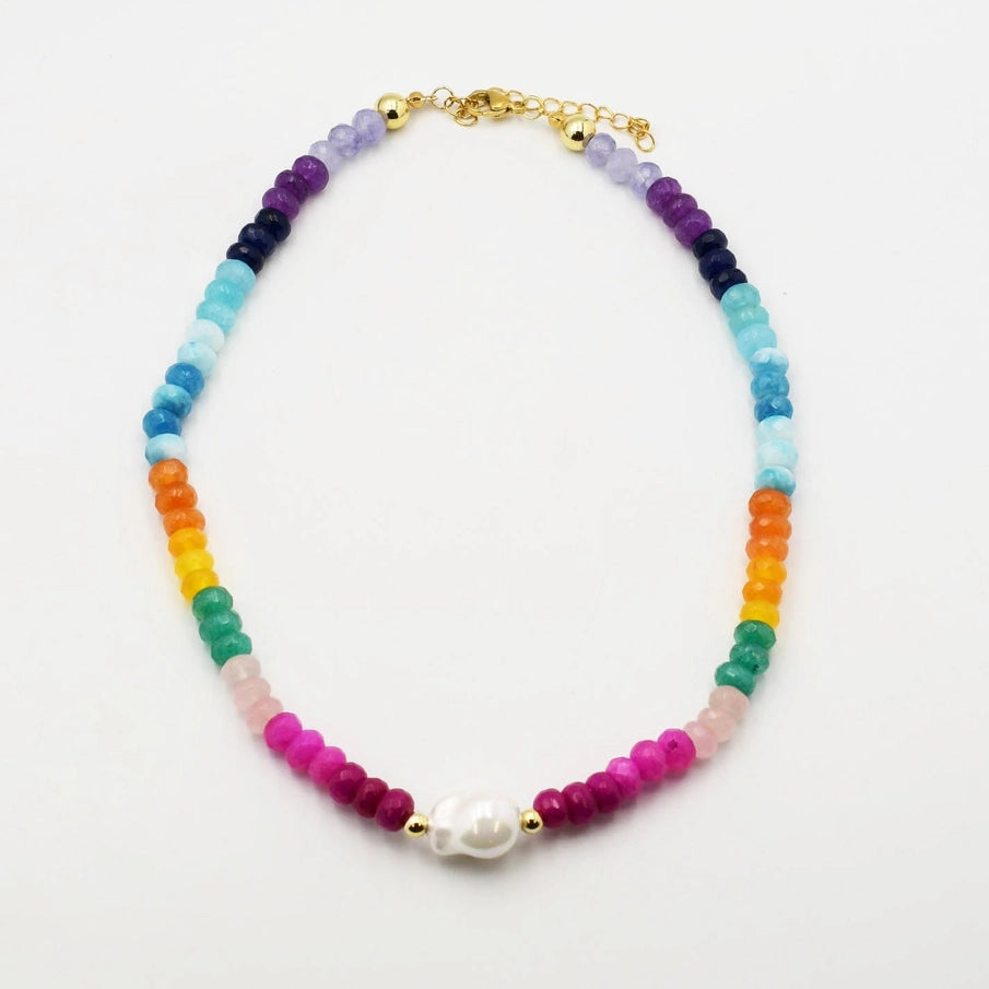 Colorful Gemstone Pearl Necklace