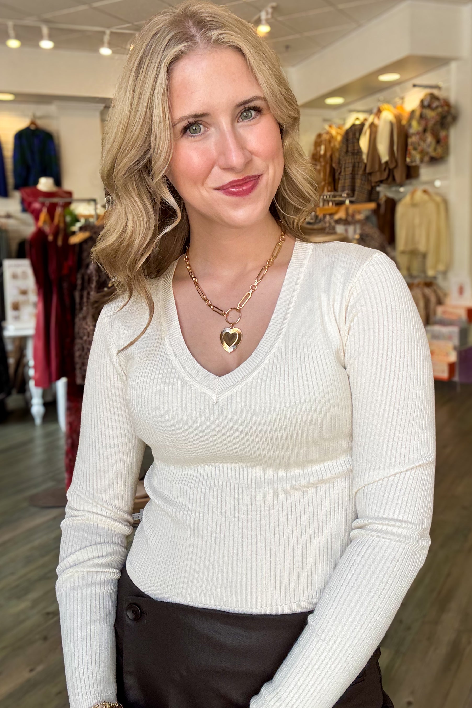 The Daphne Black Knit Sweater features a flattering V-neck and a fitted, cropped design that’s perfect for layering. Its cozy knit fabric adds warmth without bulk, making it ideal for transitional weather. Please note, this sweater runs small—consider sizing up for the best fit and comfort.