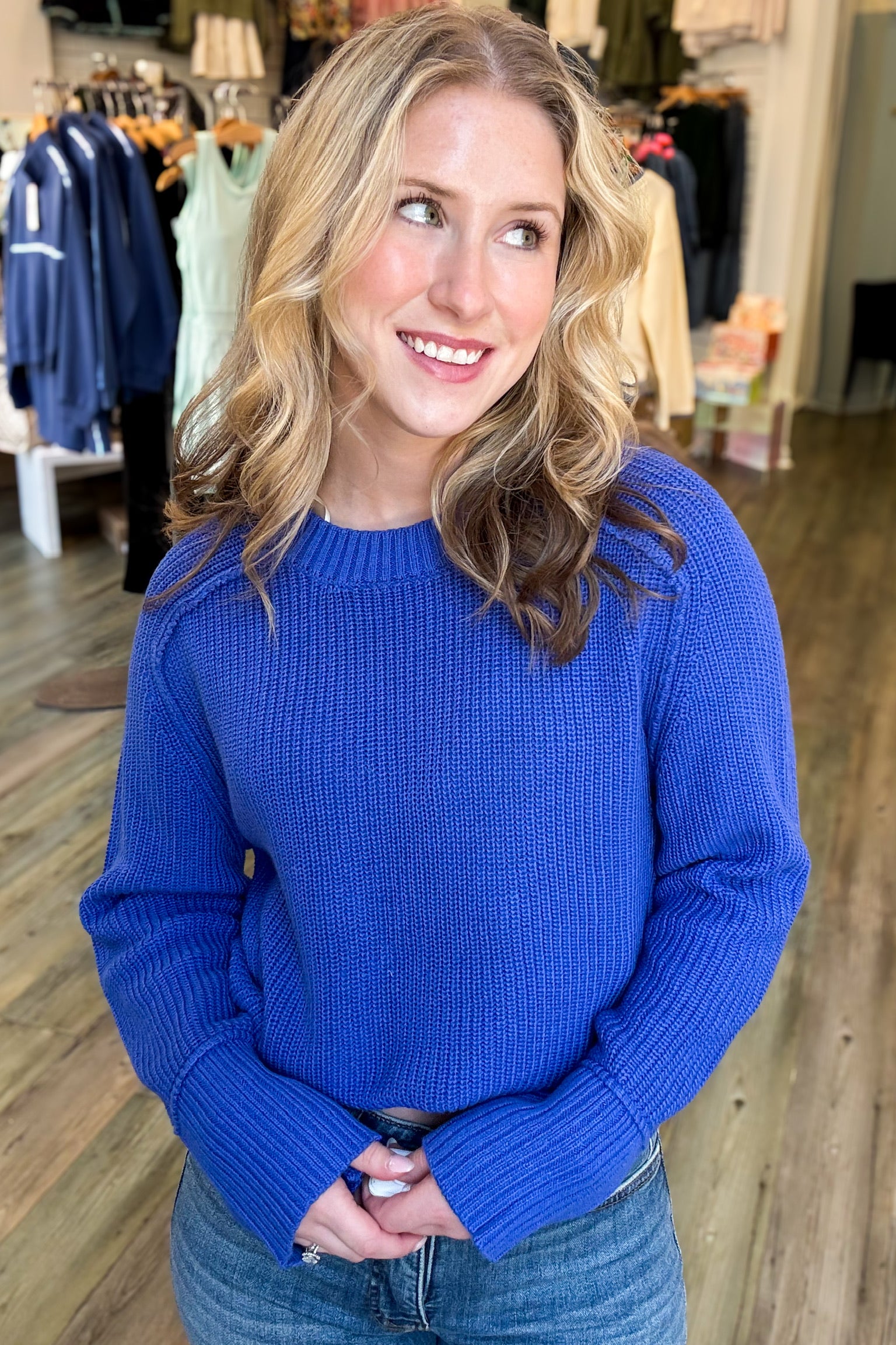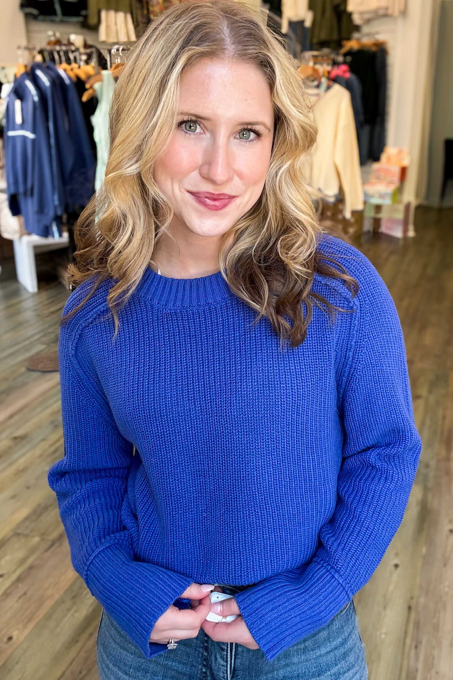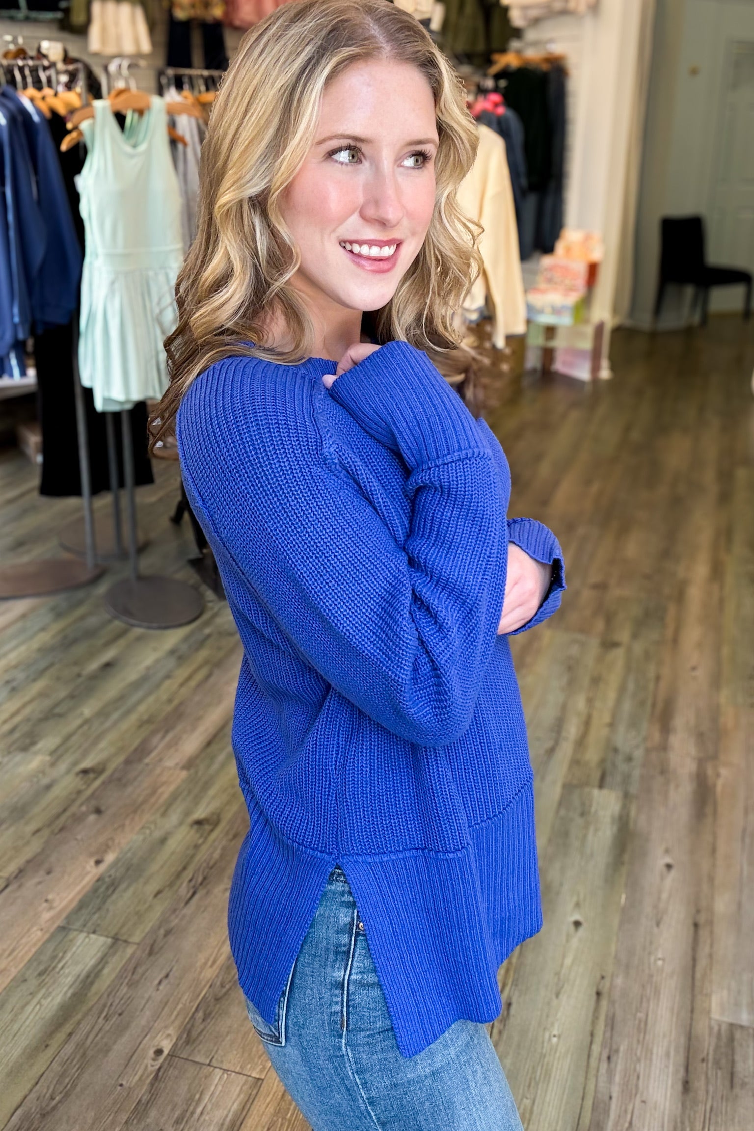 Experience effortless comfort with the Ellie Cobalt Sweater. Crafted in a rich cobalt hue, this knit sweater features subtle side slits that add a touch of style and ease of movement. Its relaxed fit makes it perfect for layering or wearing solo, ensuring you feel cozy and confident throughout your day.