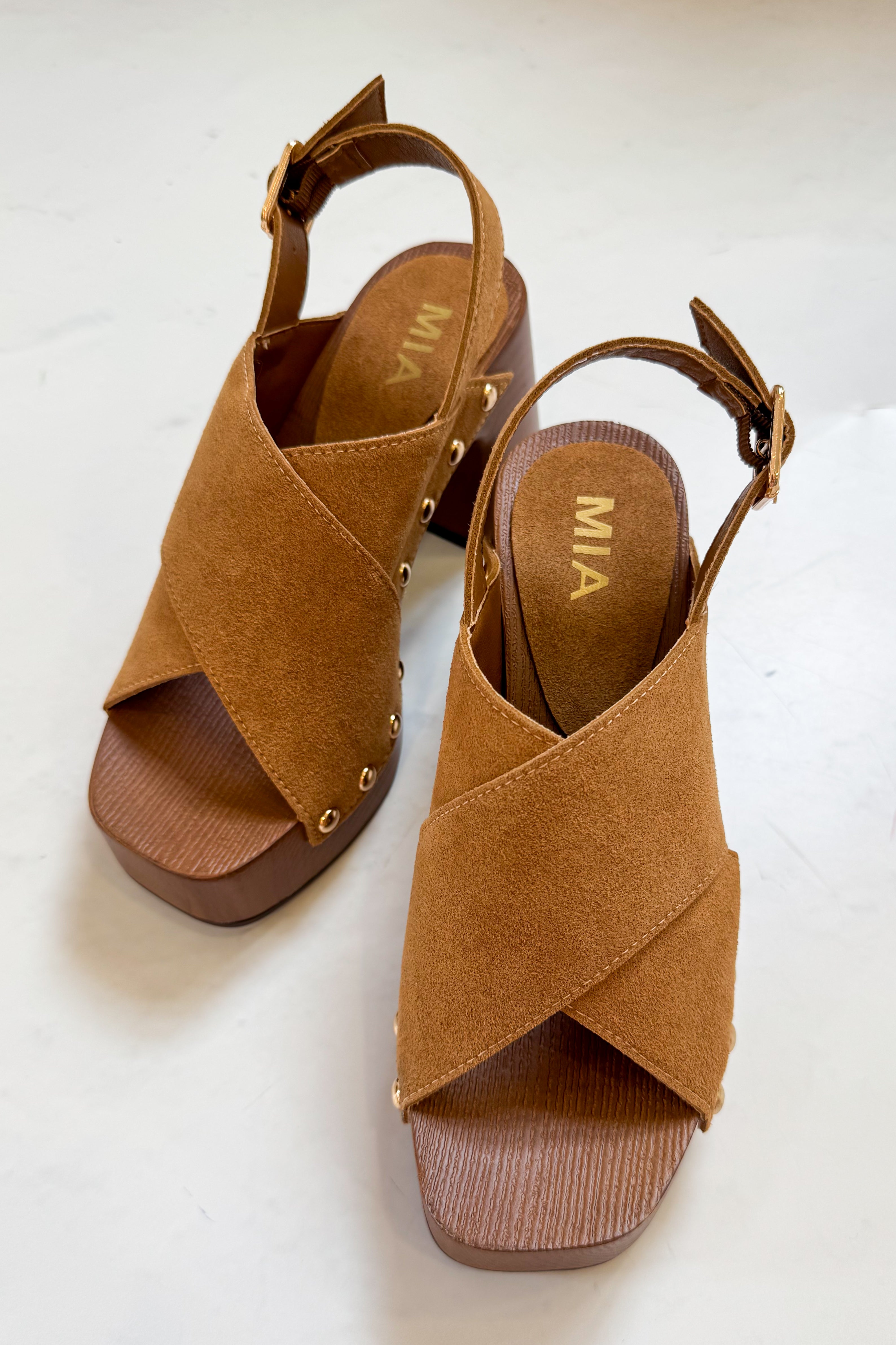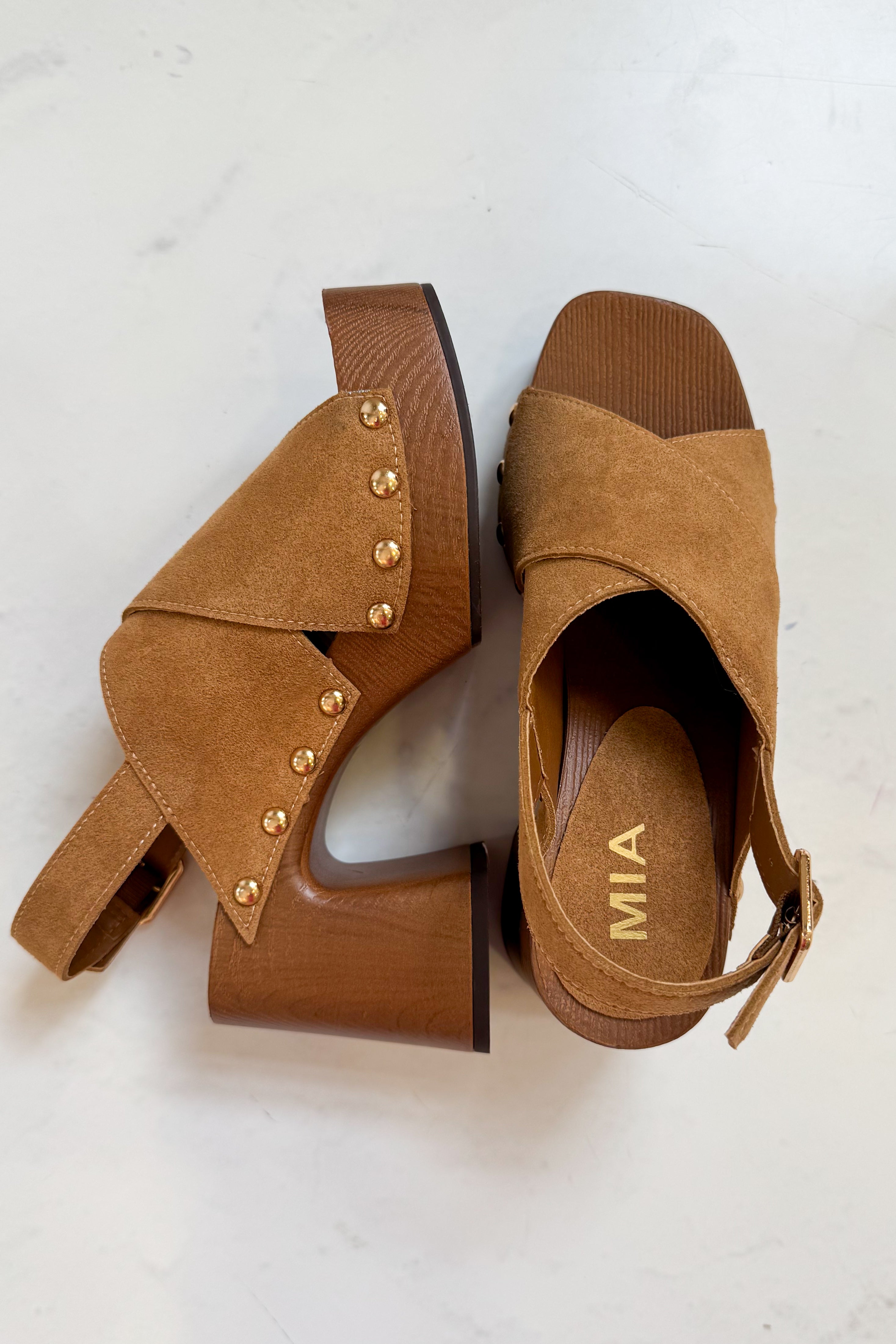 Step into statement-making style with the Eudora Tan Chunky Heels. These bold beauties feature a sturdy chunky heel that keeps you grounded while you conquer your day, wrapped in a rich tan hue that pairs with everything. Gold stud details sparkle along the sides, adding just the right amount of glam without trying too hard. The ankle wrap design hugs your foot securely, so you can strut with confidence. Perfect for anyone who refuses to choose between comfort and turning heads.