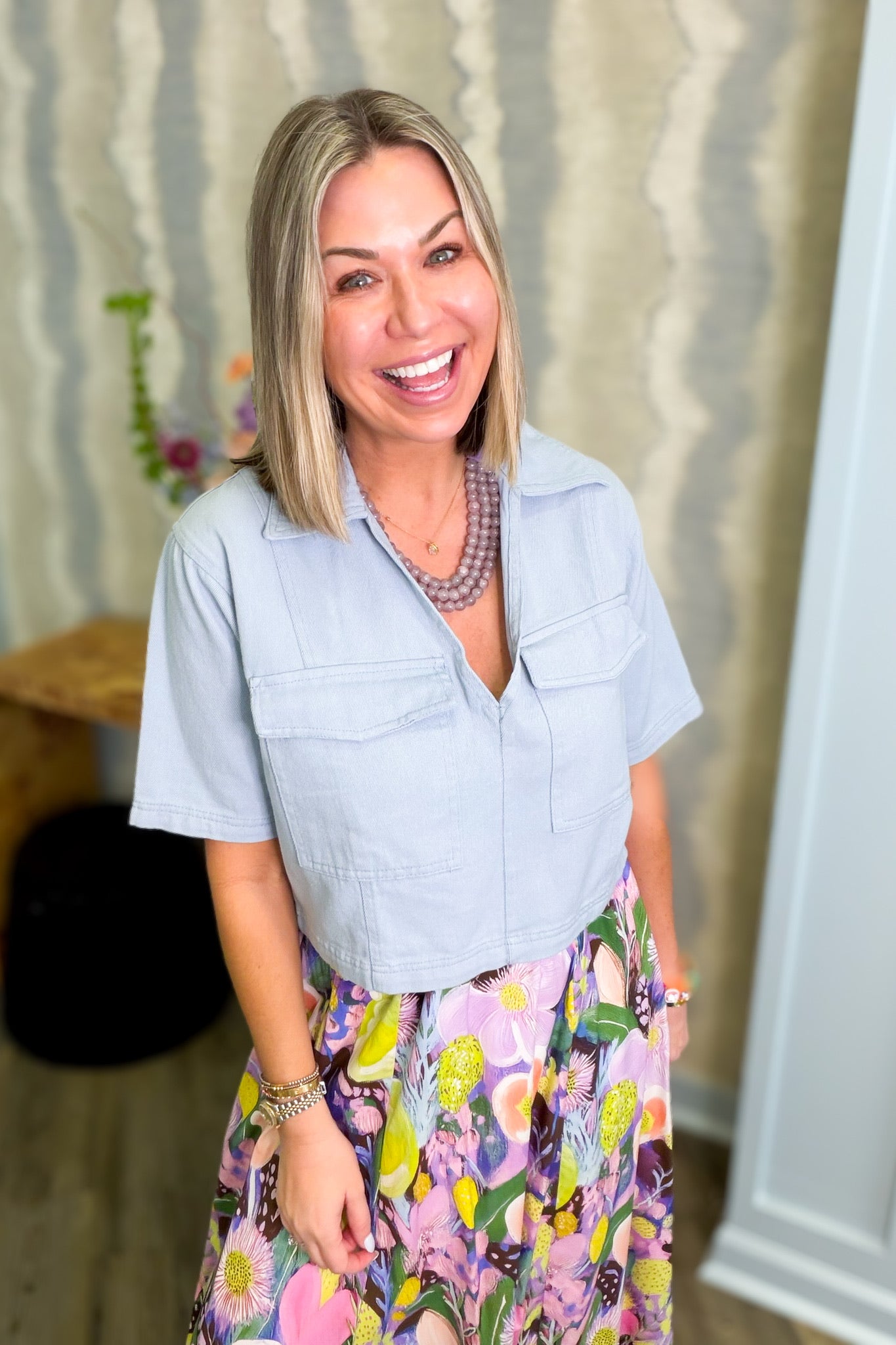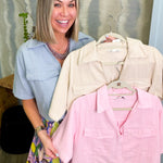 Introducing the Francesca—your new favorite piece for mixing and matching! This cropped utility top brings serious style with its structured collar and chic V-neckline. Available in a timeless solid shade, it's the kind of top that plays well with others. Dress it up with tailored trousers, keep it casual with your favorite denim, or layer it under slip dresses for that effortless cool-girl vibe. Versatility never looked so good.