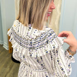 Step into effortless elegance with this enchanting maxi dress that blends vintage charm with contemporary style. Adorned with delicate floral embroidery, it features a sweet Peter Pan collar and crisp white quarter-length sleeves that add a touch of whimsy. The adjustable tie waist lets you customize your fit, while functional pockets hide beneath the tiered skirt—because looking fabulous shouldn't mean sacrificing practicality. A dreamy choice for garden strolls, weekend getaways, or any occasion calling for graceful sophistication.