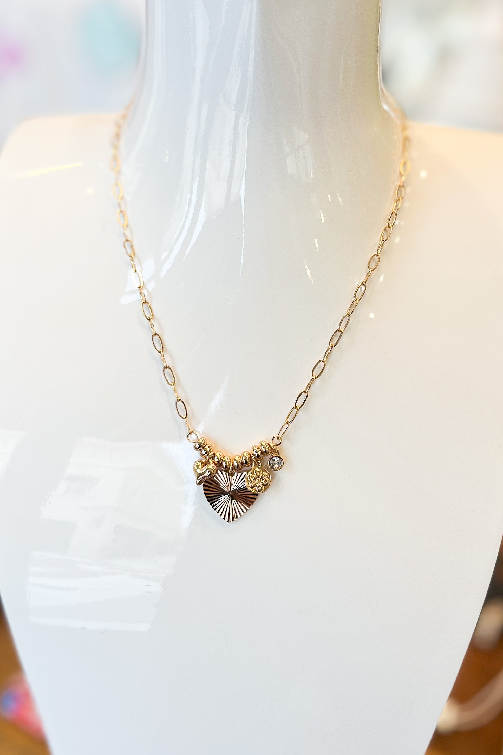 GOLD HEART PENDANT CHARM NECKLACE