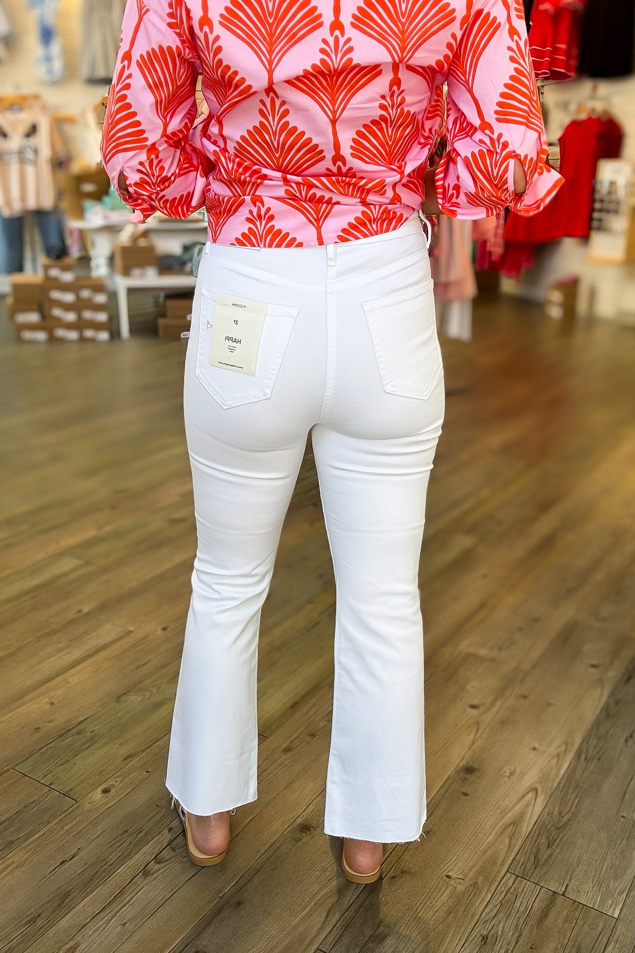 HAPPI WHITE STEP HEM CROP FLARE JEANS