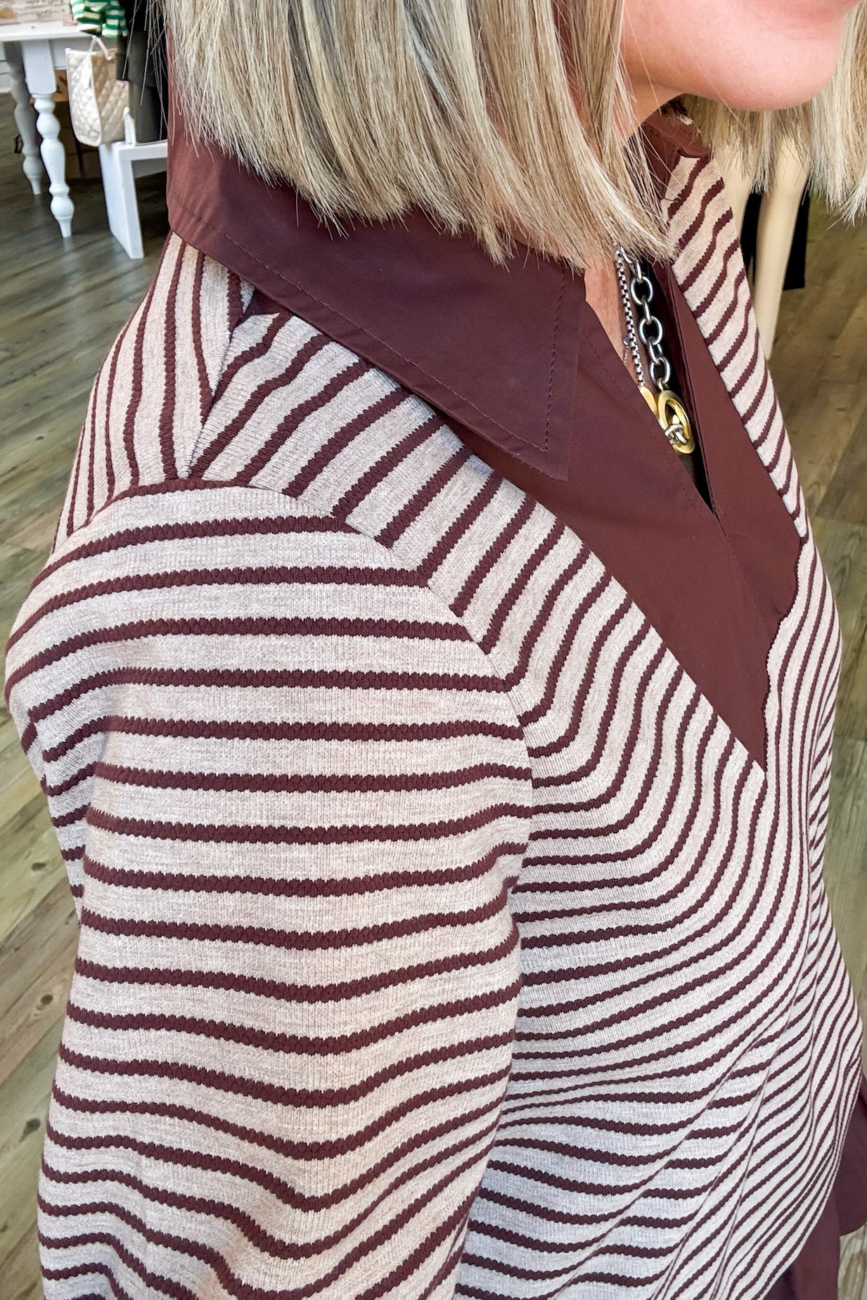 The Holly Striped Dress features elegant light and dark brown stripes that create a timeless look. Its textured neckline and hem add subtle detail, while the lightweight fabric ensures comfort and ease of movement throughout your day. Perfect for staying stylish in warmer weather without sacrificing comfort.