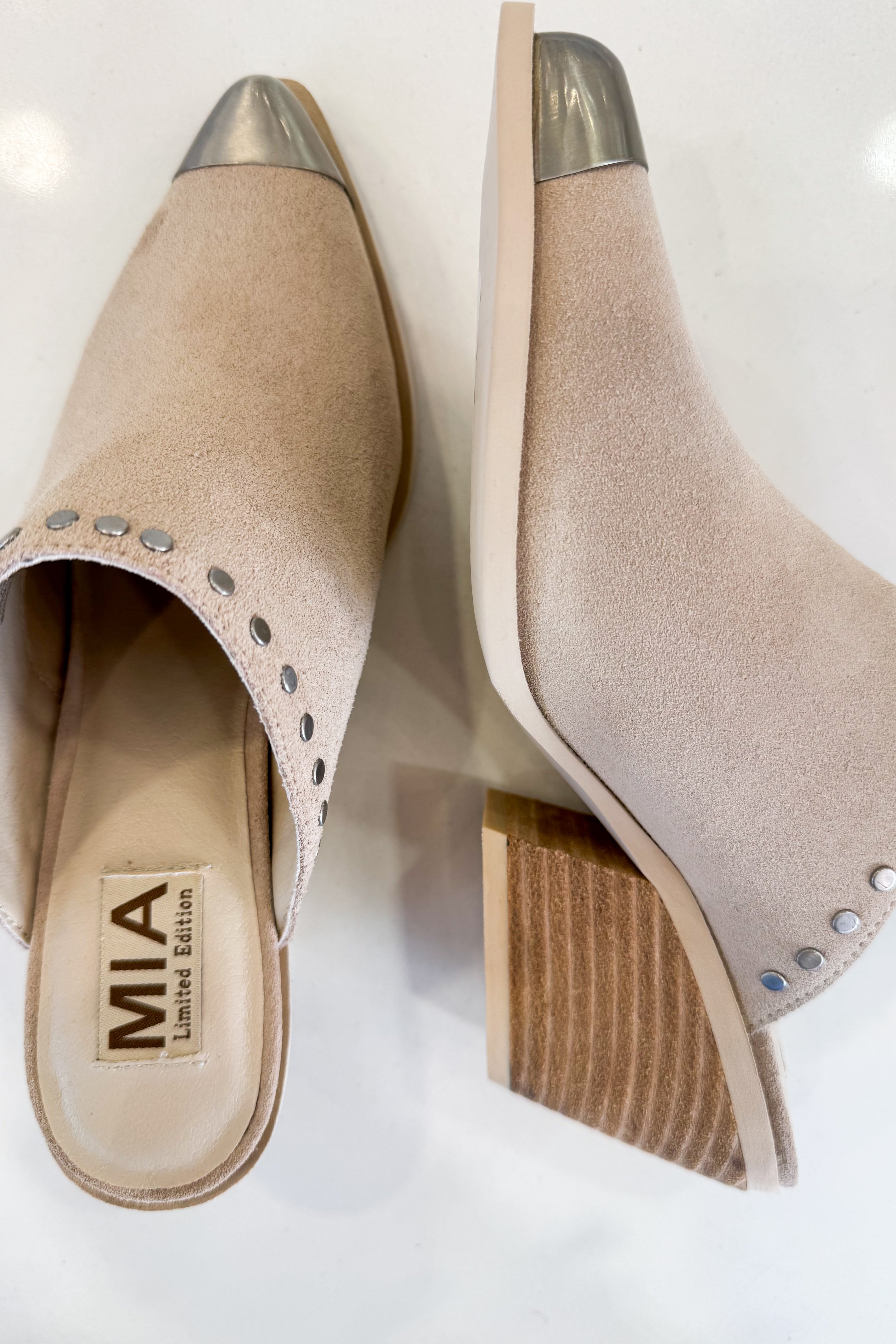 Step into effortless elegance with the Jackson Sand Mule Heels. These versatile mules feature a warm sand tone that pairs beautifully with any wardrobe, while delicate silver detailing on the toe and charming button accents add a touch of sophistication. The comfortable heel height makes them perfect for transitioning from day to evening, whether you're heading to the office or out for a special occasion. A timeless choice that supports your style journey.