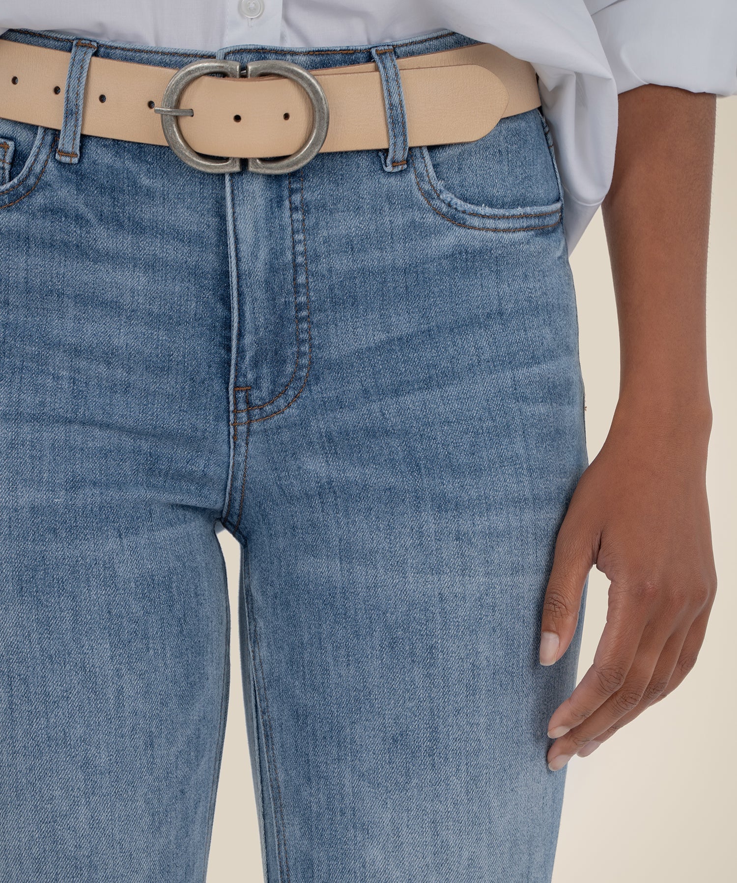 - Flatter your figure with these high rise Fab Ab ankle flare Jeans in a versatile light wash. Designed with our tummy-smoothing Fab Ab technology, they feature a trendy Nest leg, subtle raw hem, and stylish ankle flare for a modern, flattering fit. Perfect for effortless everyday style.