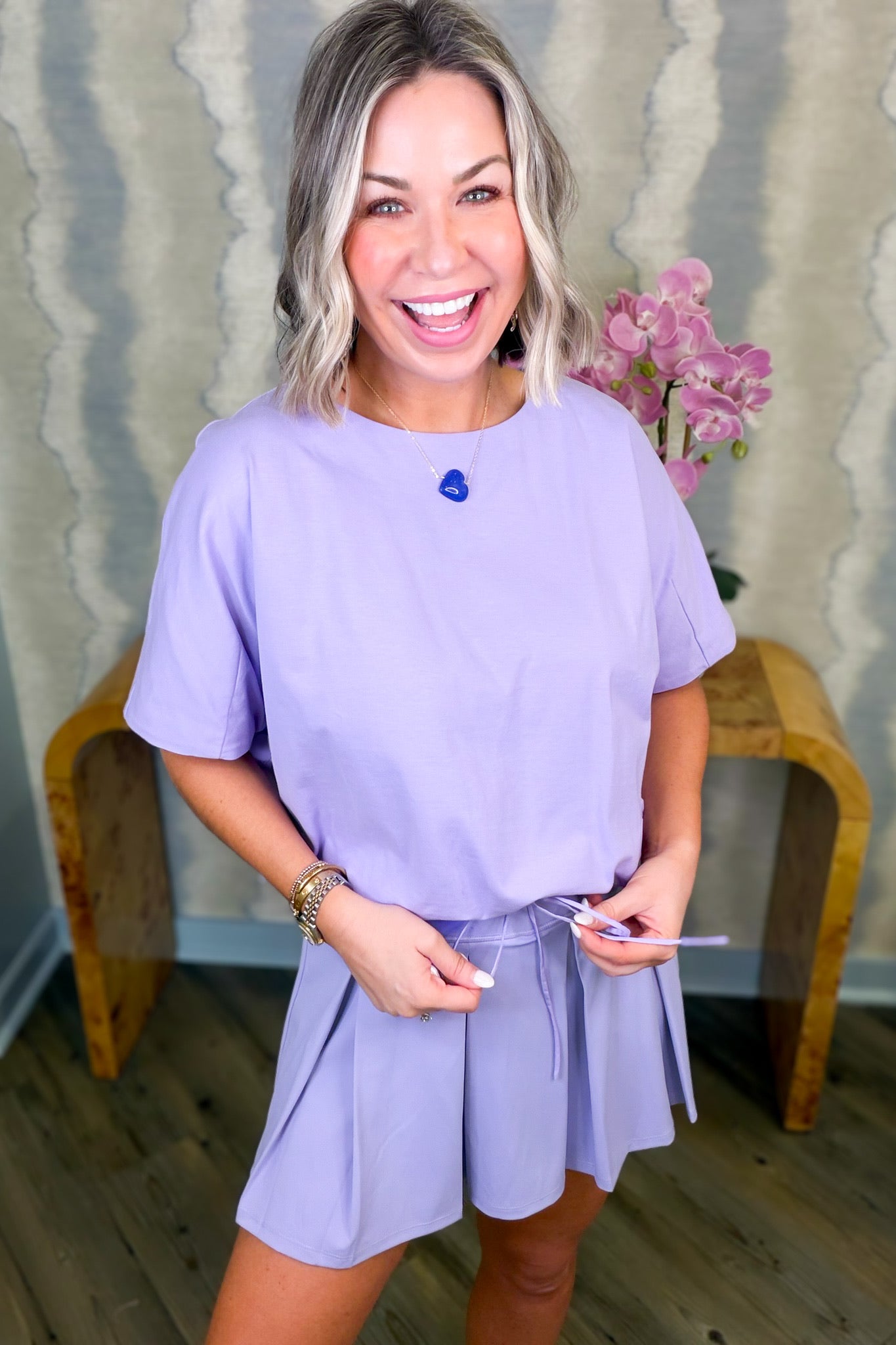 The Layla Basic Top is your new go-to for effortless style. This lavender short-sleeve tee features a drawstring at the hem so you can cinch it for a custom fit—dress it up or keep it casual. Pro tip: size down for a more tailored silhouette that hugs in all the right places. Perfect for layering or wearing solo, it's the versatile piece every wardrobe needs.