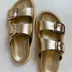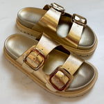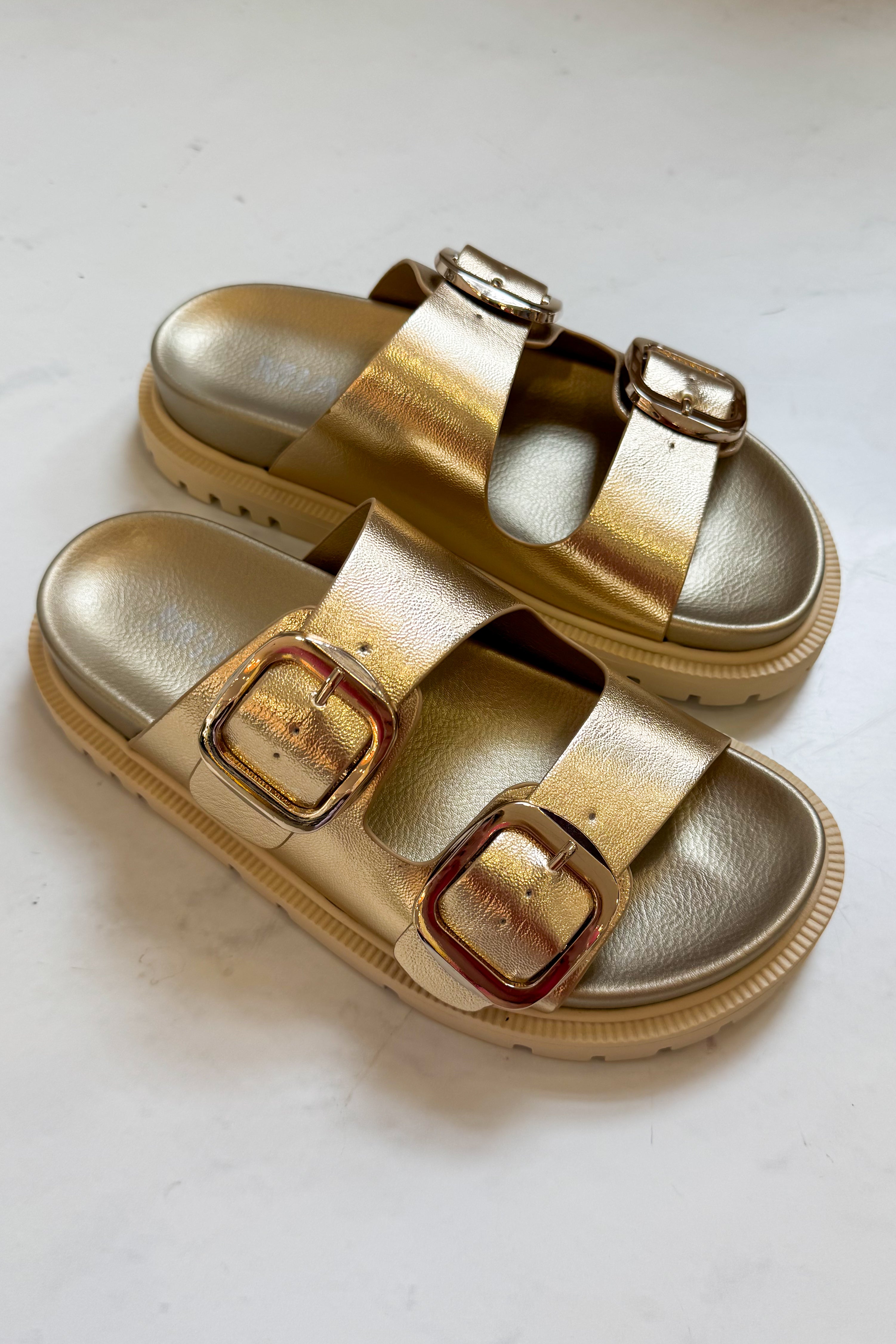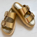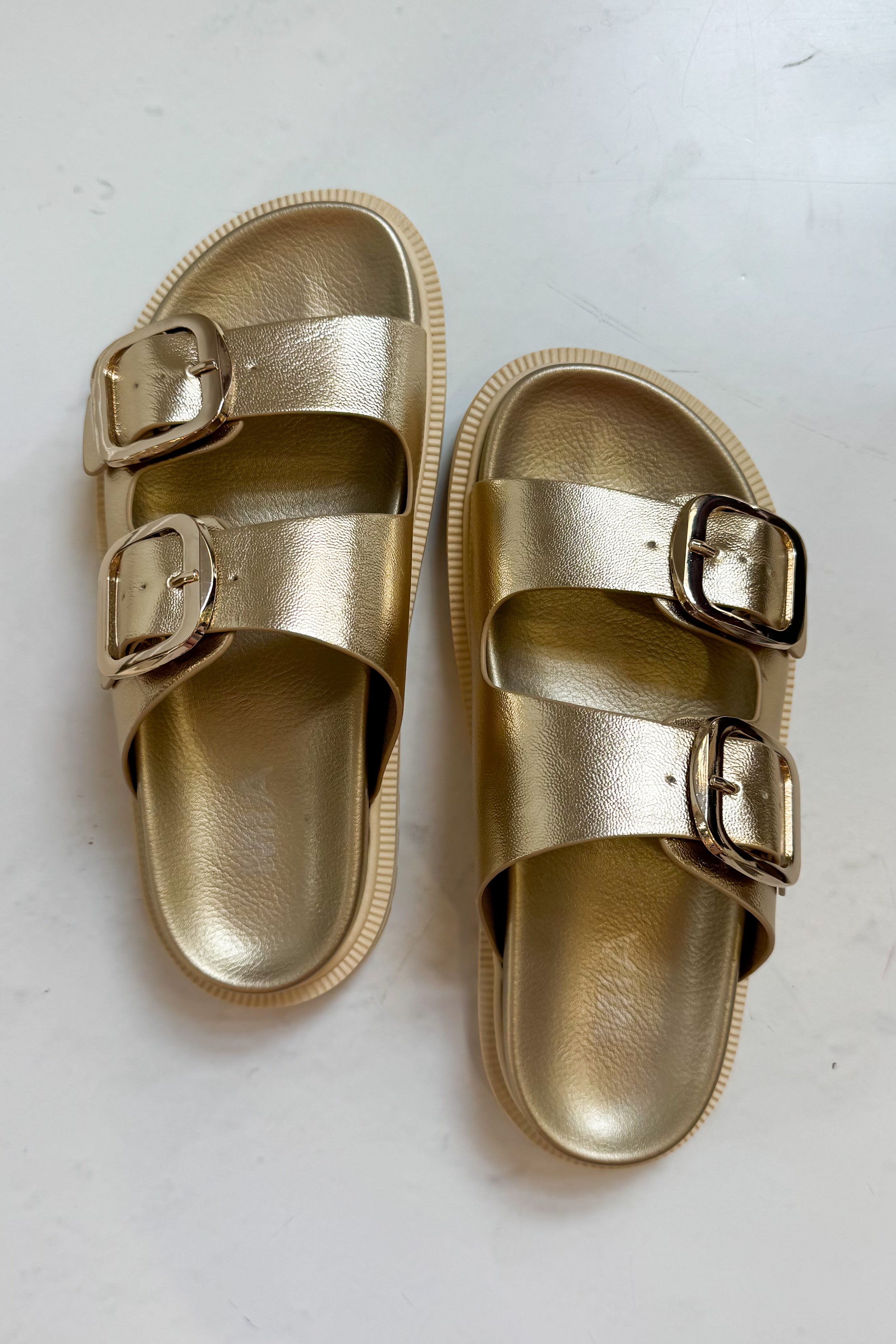 Step into summer style with the Livi Metallic Gold Sandals—where glamour meets comfort. These eye-catching sandals feature shimmering metallic gold finishes and dual adjustable straps secured with sleek buckles, giving you the perfect fit every time. Whether you're heading to the beach, running errands, or dressing up a casual outfit, these versatile beauties add instant sparkle to your look. Slip them on and shine!