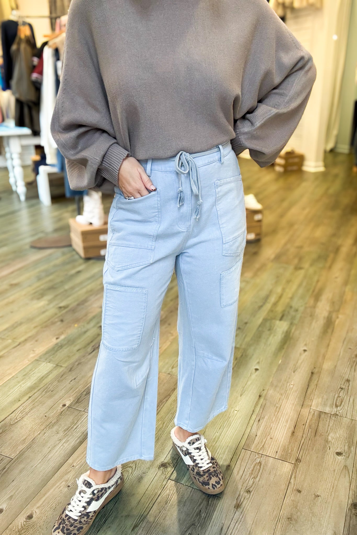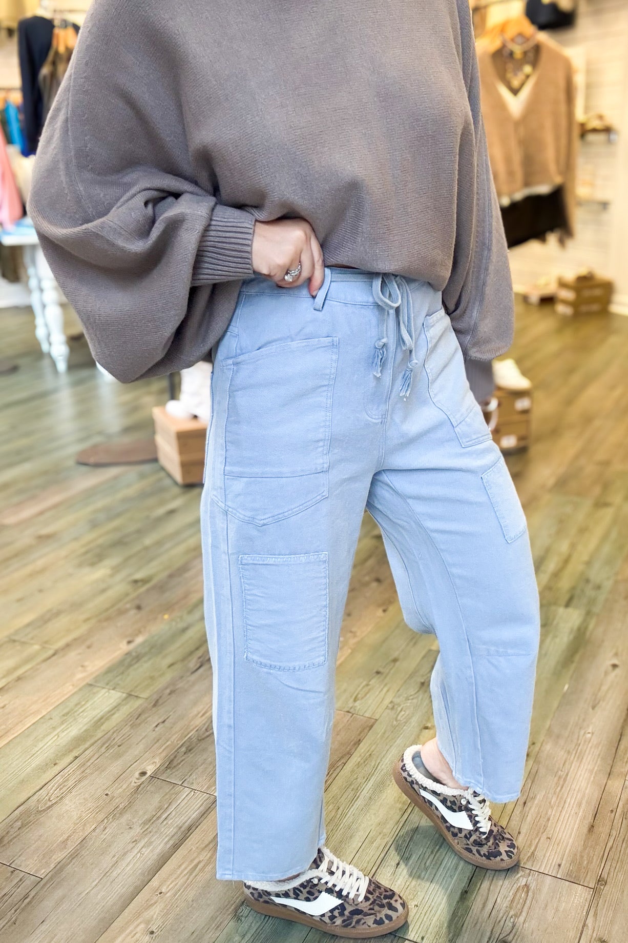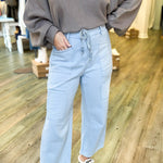 Introducing the Kimber Belted Denim Pants—your new go-to for effortless style. Crafted in a soft light blue wash, these denim pants feature a flattering front belt that cinches your silhouette just right. Thoughtful pocket details add both function and flair, making them perfect for everything from casual weekends to laid-back office vibes. Comfortable, versatile, and undeniably cool.