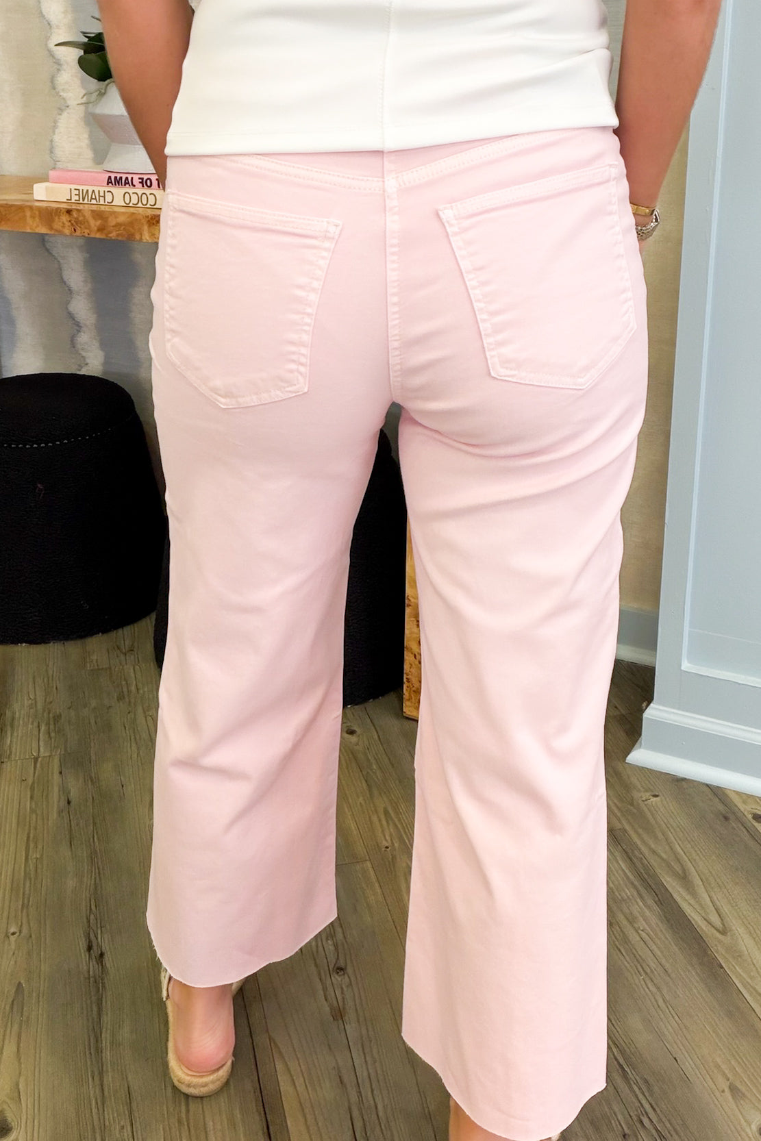 Get ready to upgrade your denim collection with the Meg High Rise Wide Leg Jean in Princess pink! These jeans are a total statement piece. The flattering high-rise cut makes your legs look amazing, and the relaxed wide leg moves with you all day long. We love the functional front pockets for extra style and those pockets are so practical! Plus, the soft pink color is super fresh and feminine – perfect for any outfit. Made from a comfortable blend of cotton and spandex, these high-waisted jeans have a relaxed fit through the leg. Machine wash cold, tumble dry low. Unique wash and perfect for all seasons! These are a versatile wardrobe essential that you'll wear again and again.