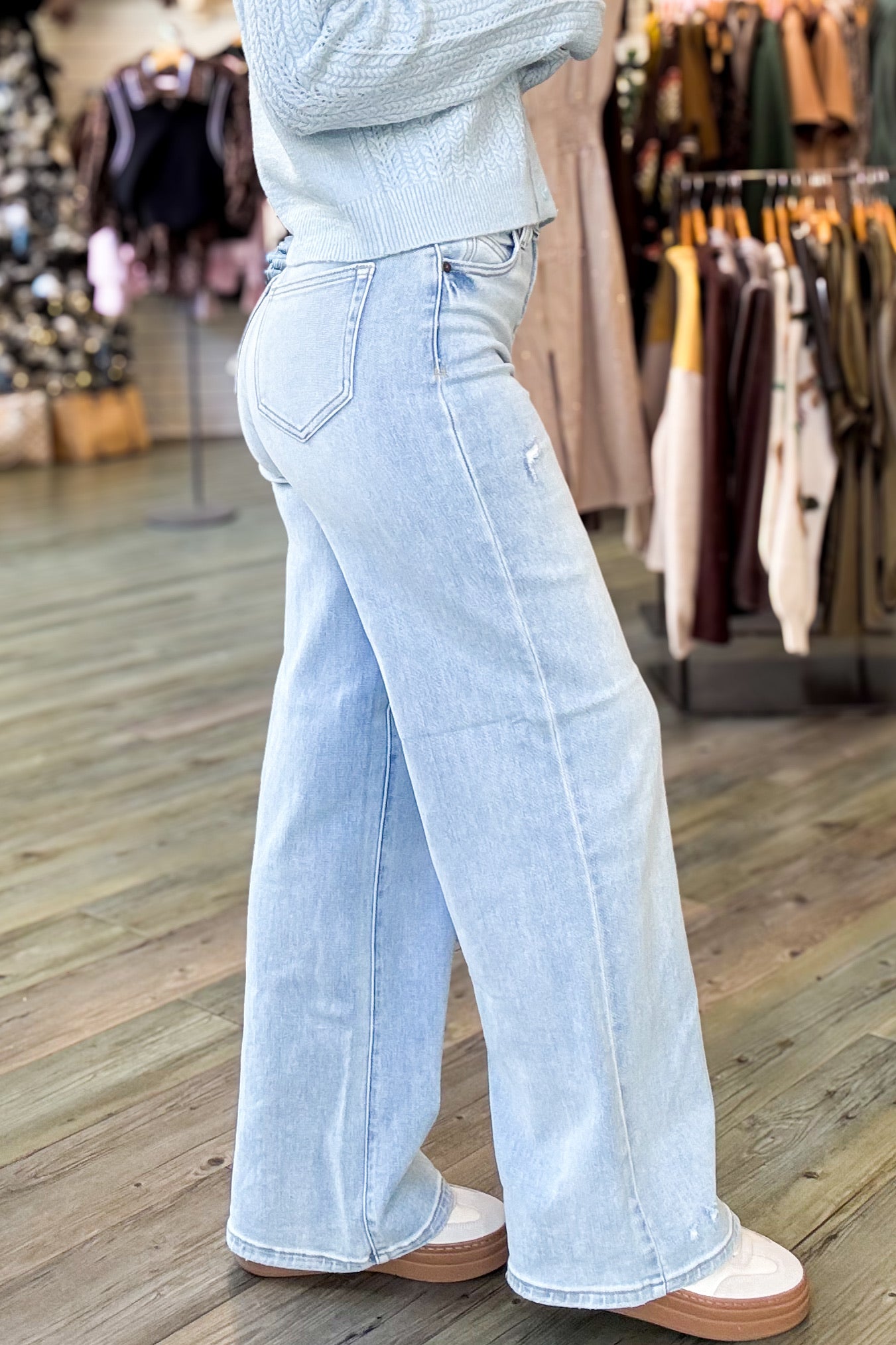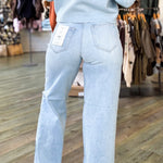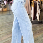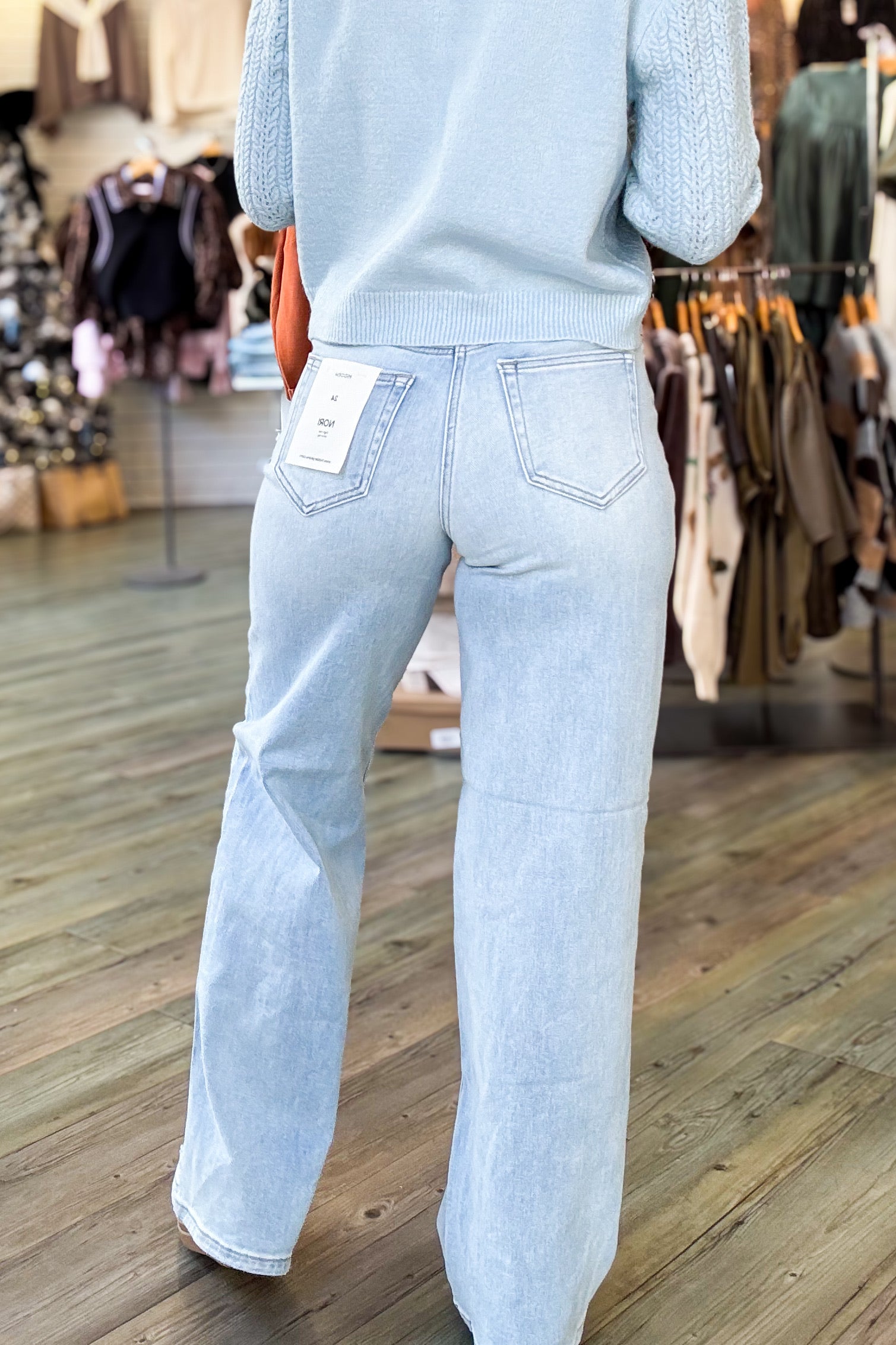 The Nori High Waist Wide Leg Denim is your new go-to for effortless cool. Cut from soft light blue ash denim, these wide-leg beauties sit high on the waist for a flattering, vintage-inspired silhouette that works with everything from crop tops to oversized sweaters. With a 31" inseam, they're perfectly proportioned for a polished look. Comfortable enough for all-day wear, stylish enough to turn heads—what's not to love?