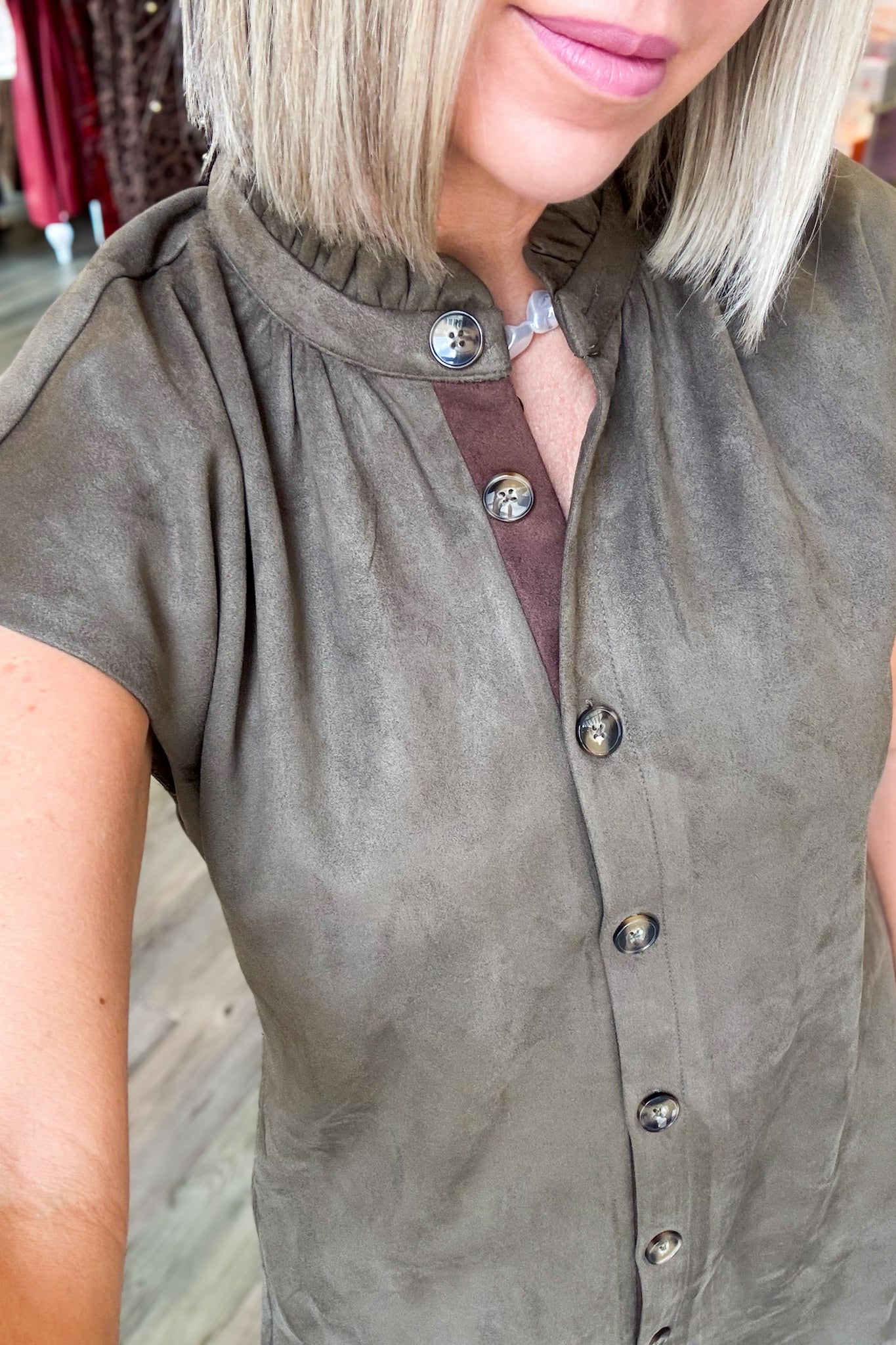 Olivet Suede Button Up Mini Dress