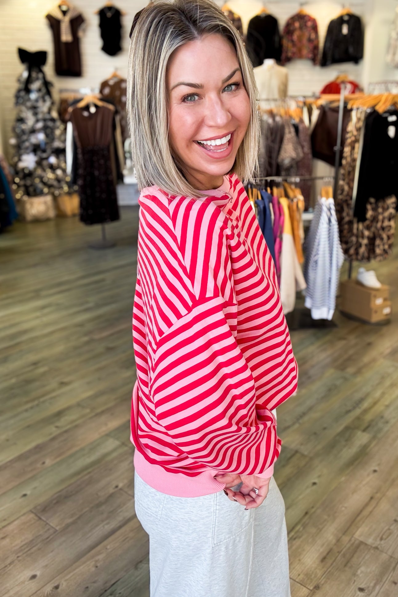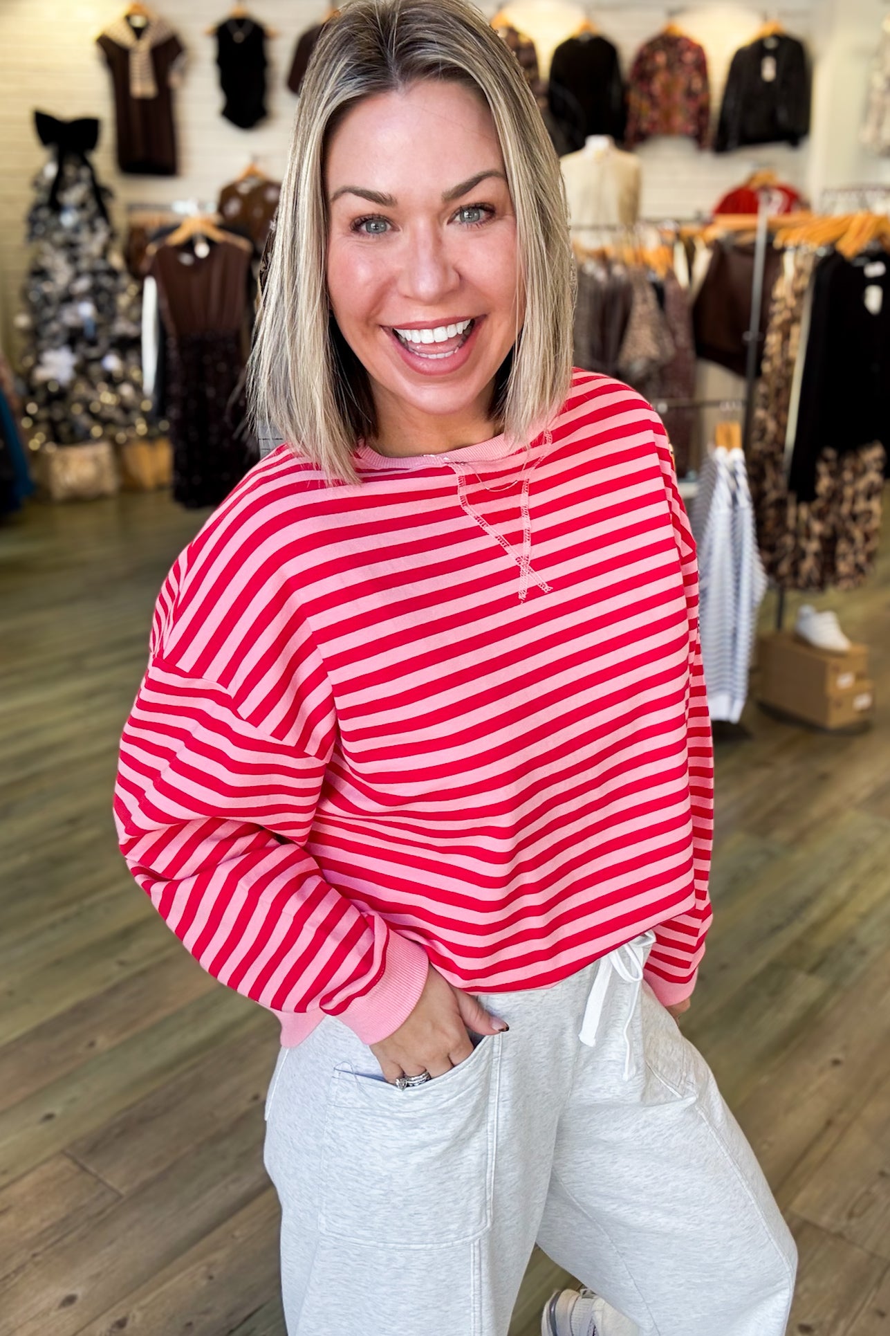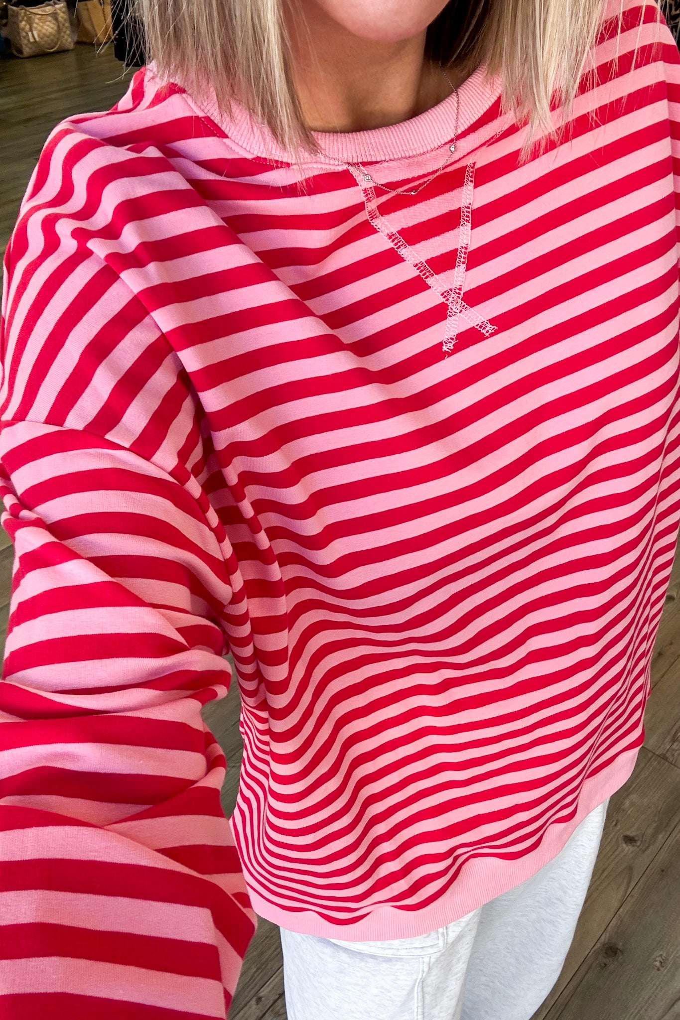 Make a statement with the Payton Stripe Top, where bold pink and red stripes steal the show. This oversized knit delivers effortless cool with its relaxed silhouette and long sleeves perfect for layering. The contrasting rib detailing adds a pop of personality to the neckline and cuffs, keeping things fresh and fun. Cozy enough for casual days, stylish enough for turning heads.