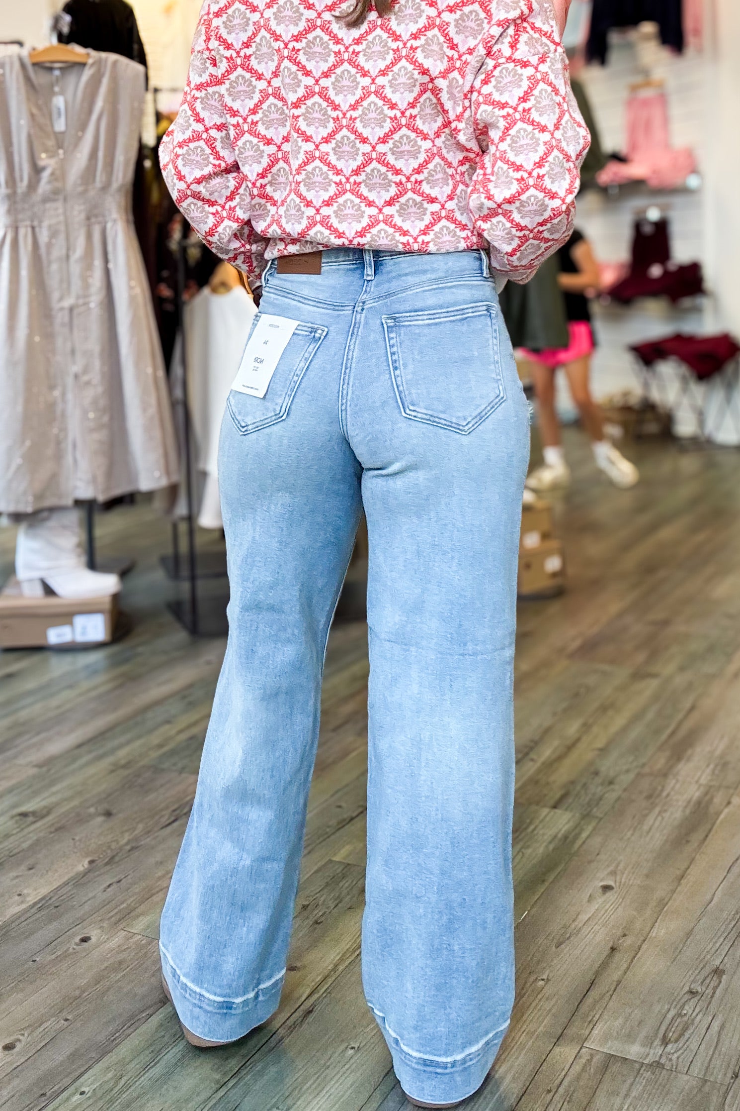 These light blue wash wide-leg jeans are your new go-to for effortless style. The relaxed silhouette skims through your day with comfort, while functional front pockets keep your essentials close. Cut to a 31" inseam for the perfect length. Throw them on with anything and feel instantly put-together—no fuss required.