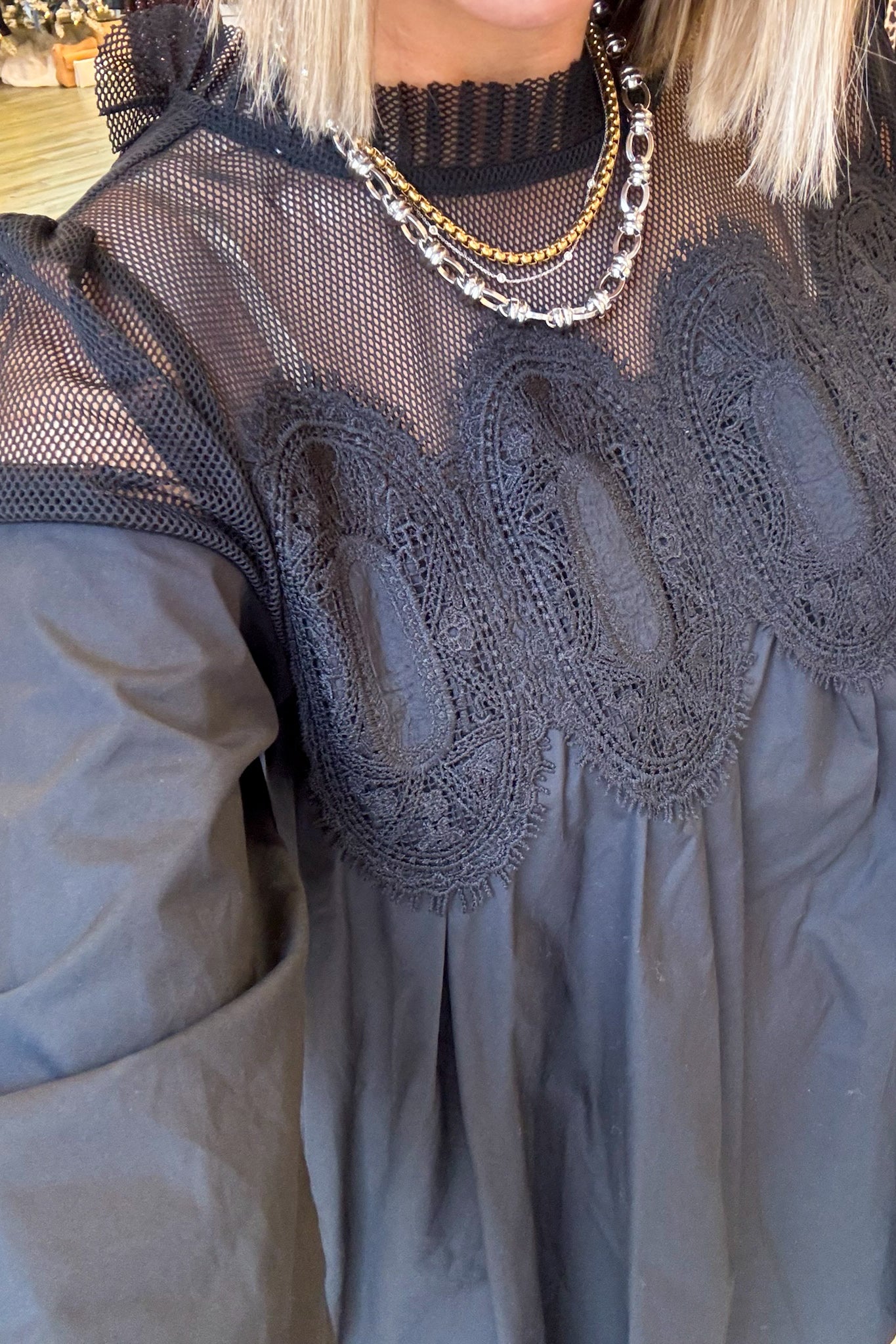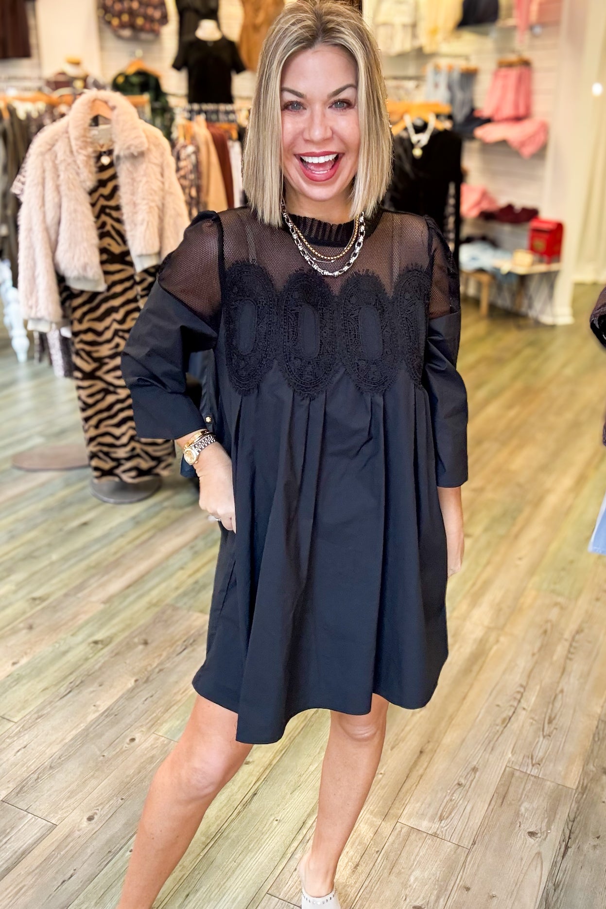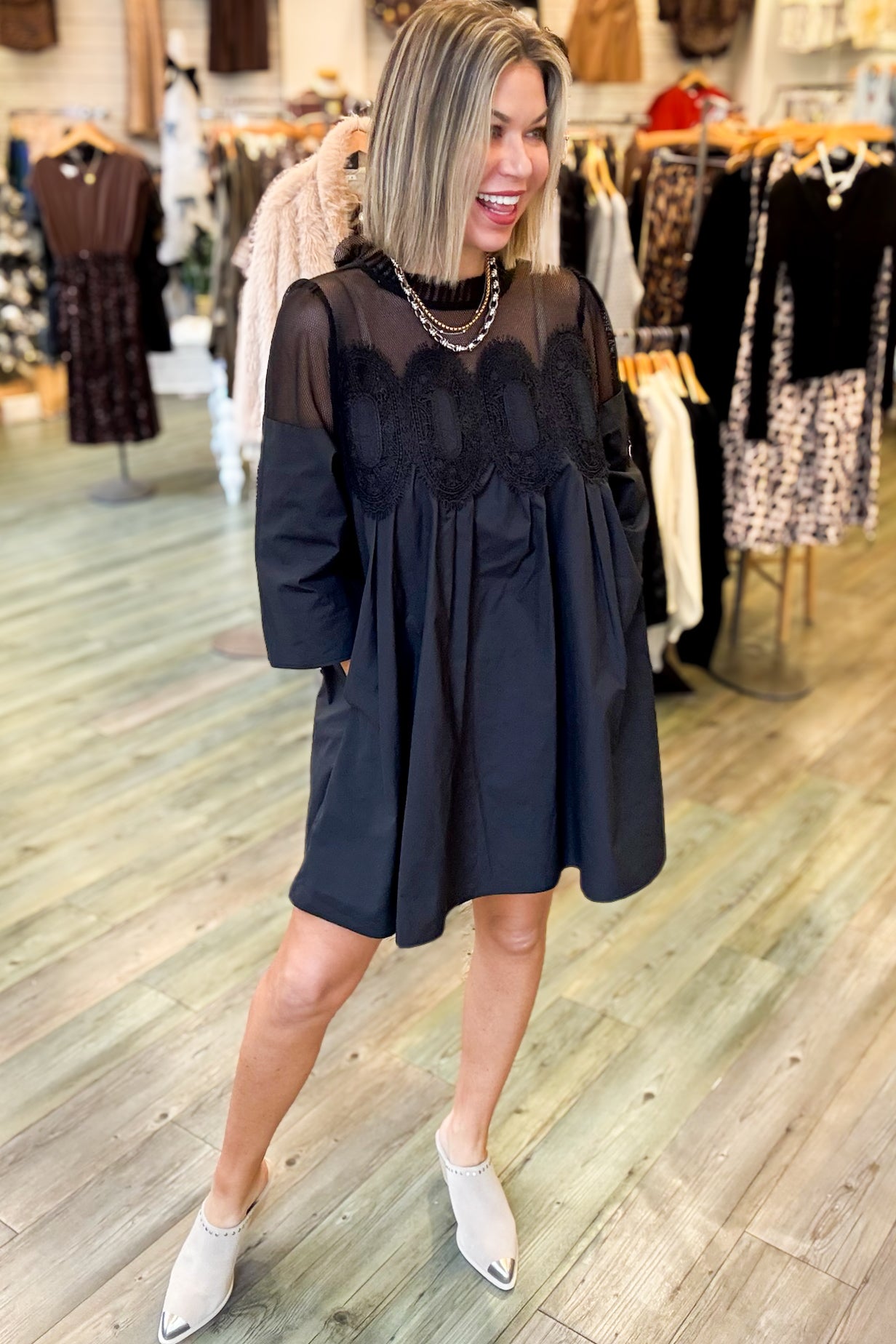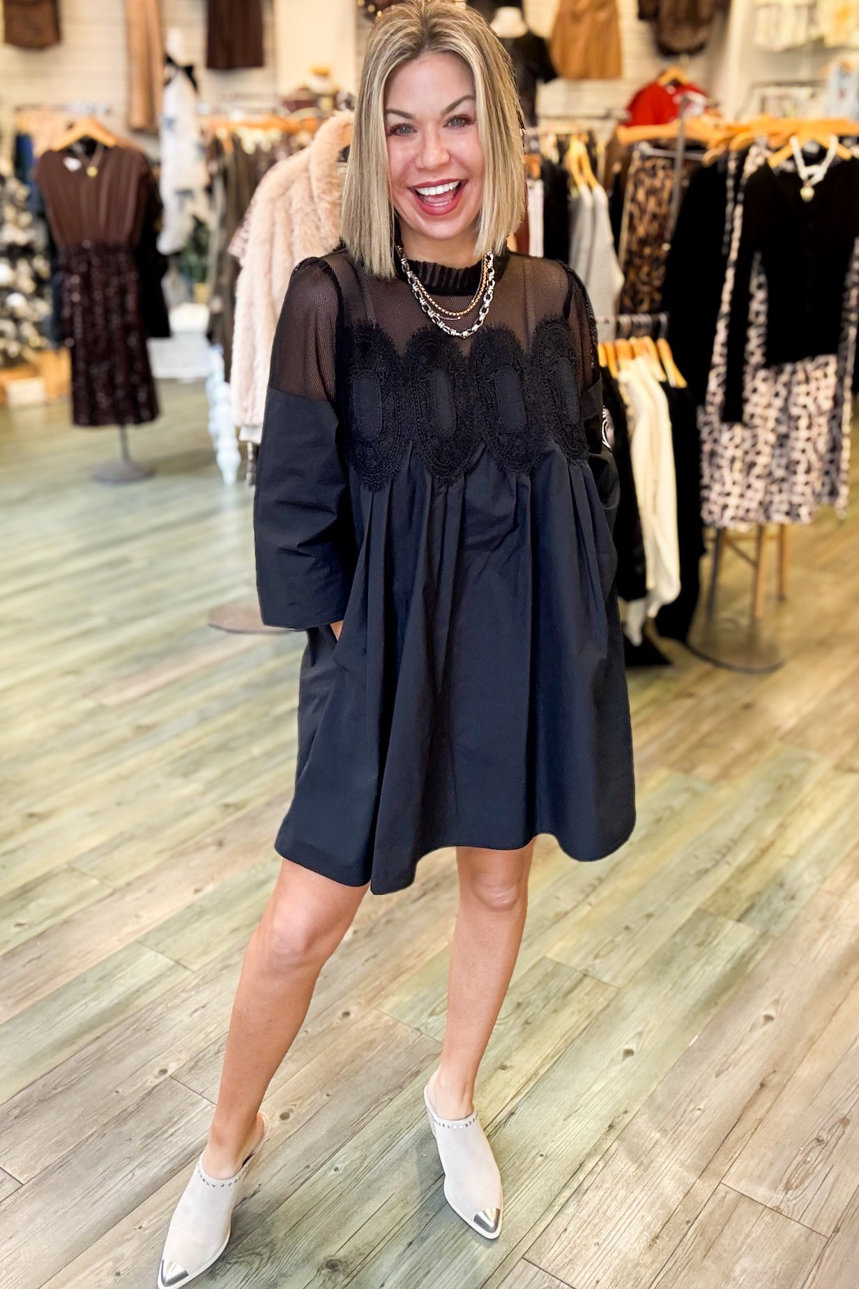 Elevate your look with Edith Black Detailed Dress. The sleek black mesh detail at the chest adds a touch of sophistication to this classic black dress. Perfect for any occasion, this dress will make you feel confident and chic.