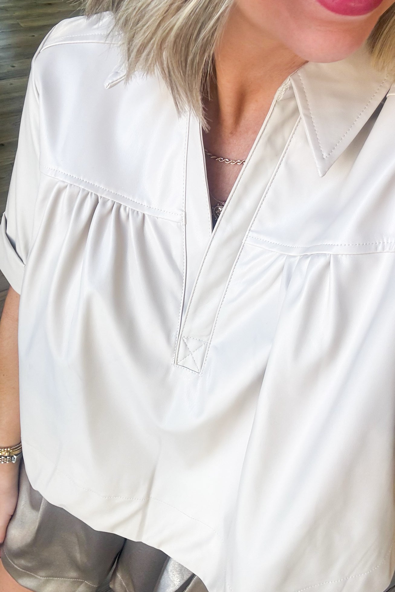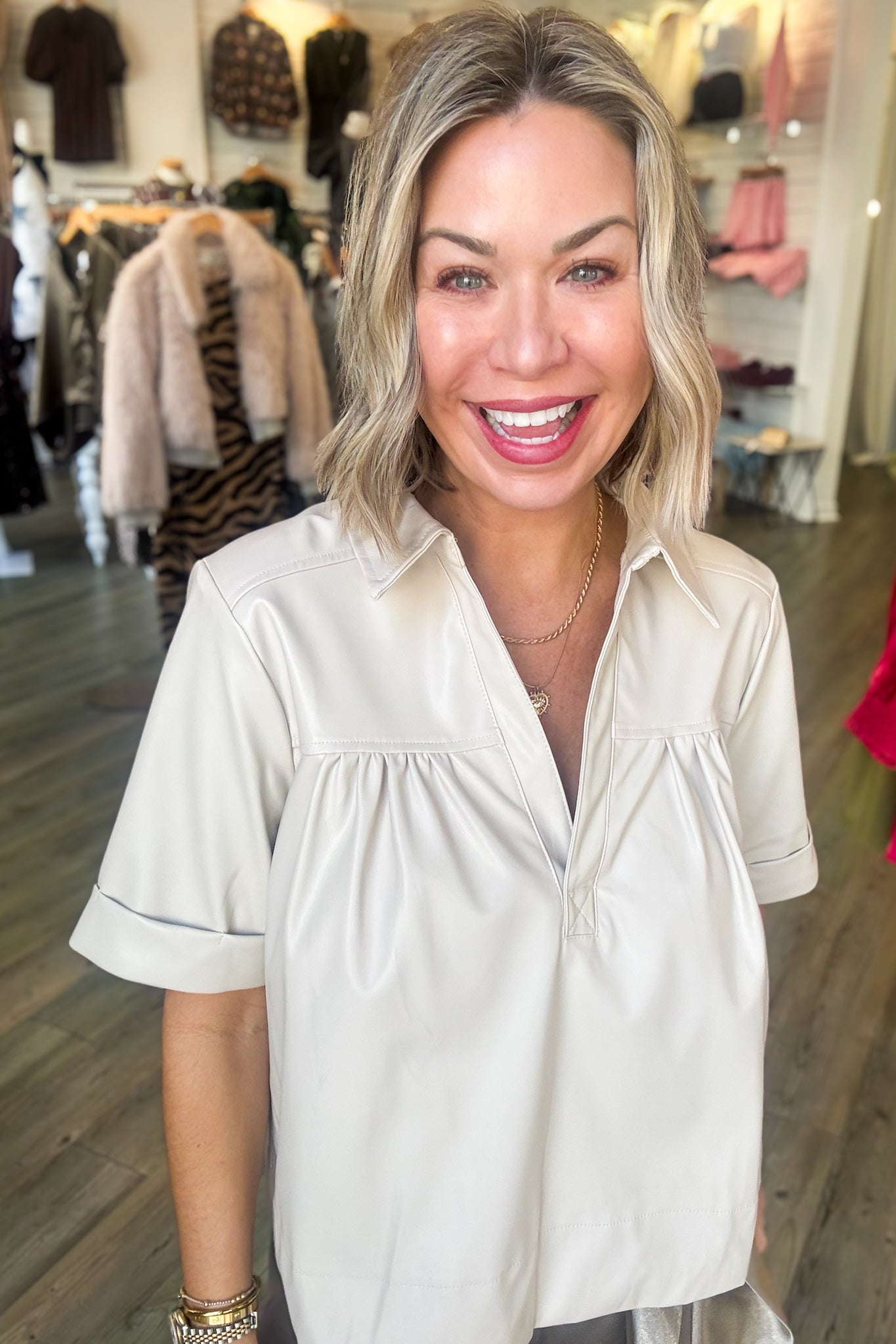 Effortless elegance meets everyday comfort in this cream short sleeve swing top. The relaxed silhouette drapes gracefully, creating a flattering fit that transitions seamlessly from casual outings to refined occasions. Crafted for versatility, this timeless piece pairs beautifully with tailored trousers, flowing skirts, or your favorite denim. A wardrobe essential that embodies understated sophistication.