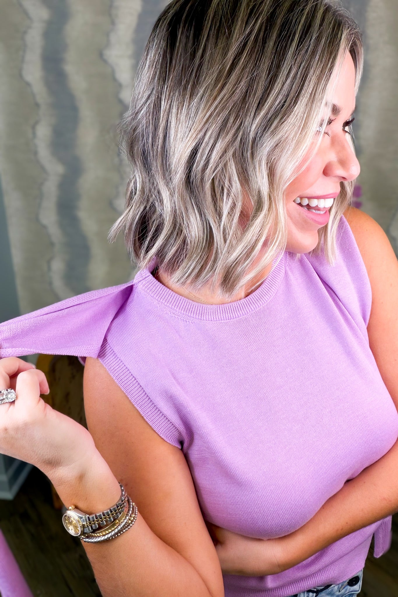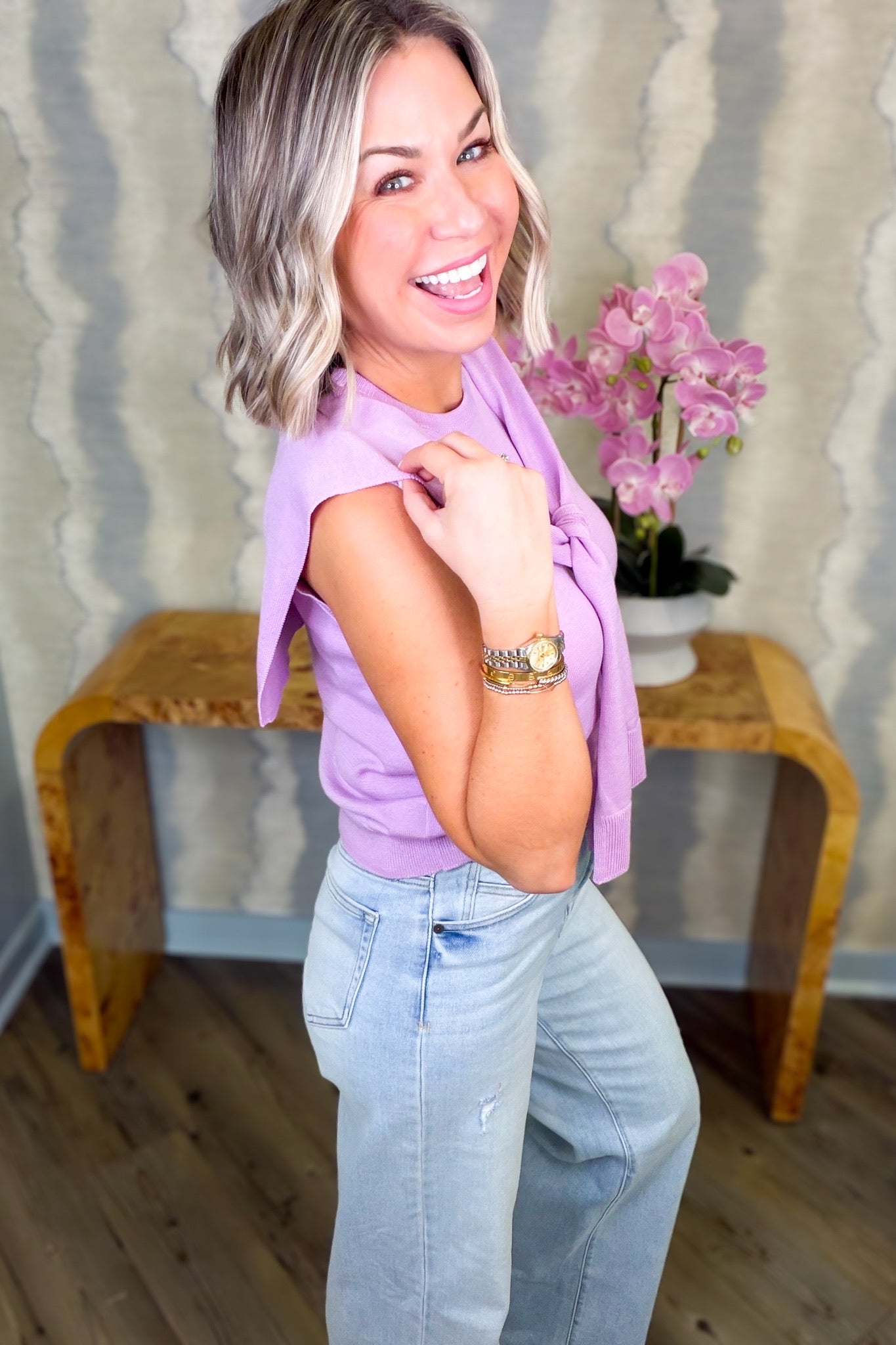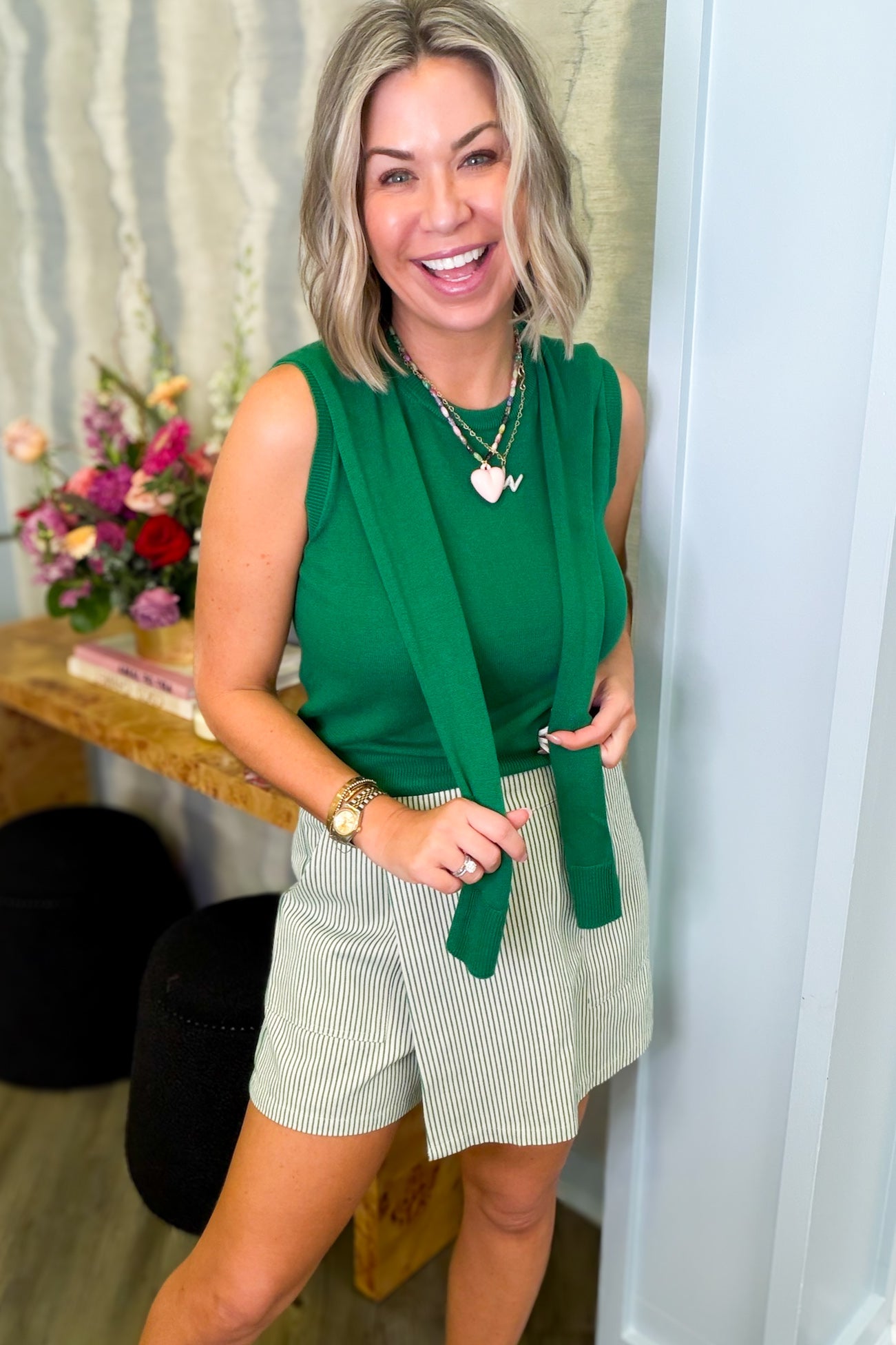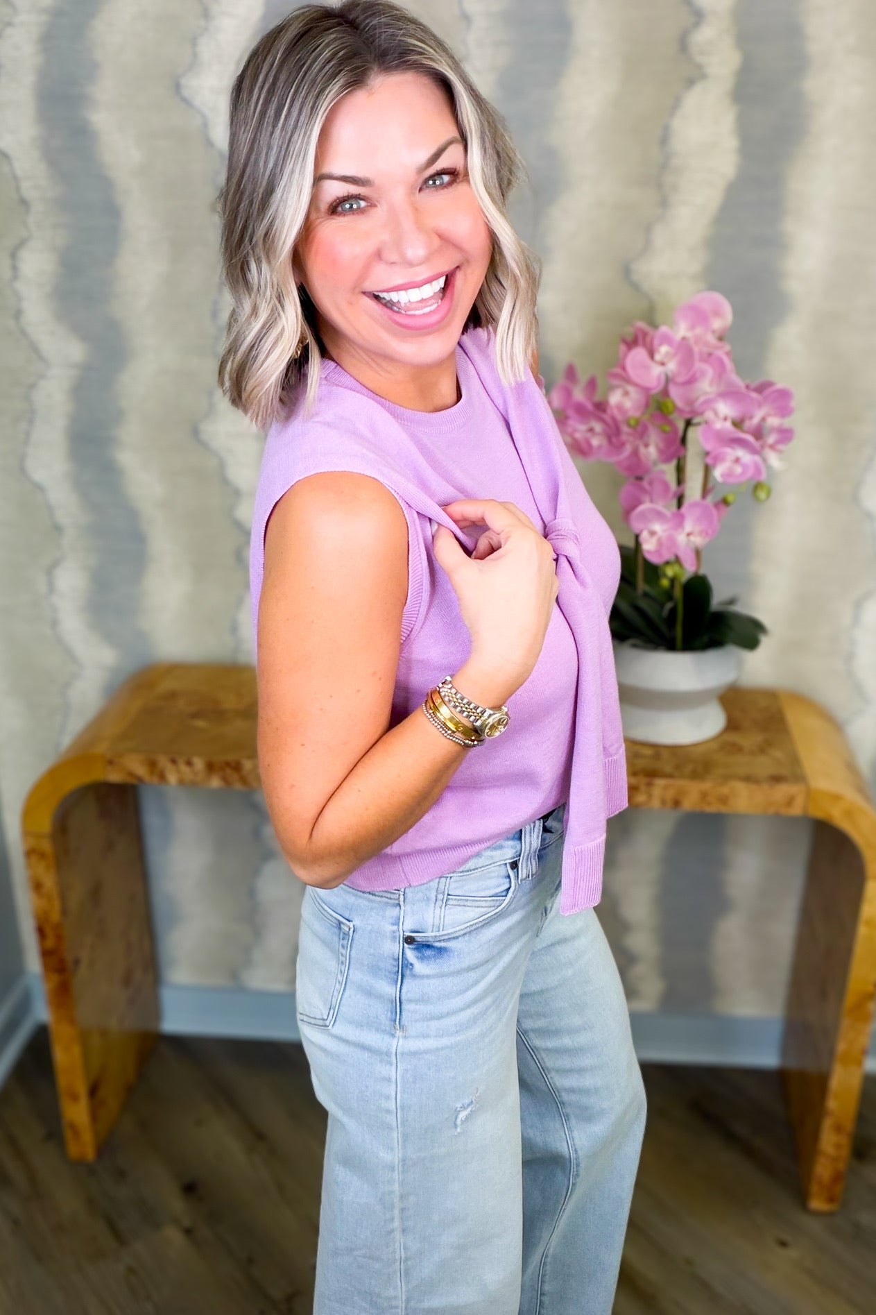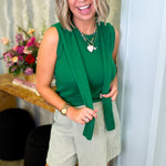 Say hello to the top that does double duty! This solid knit sleeveless style comes with an attached sweater wrap that's always there when you need an extra layer. Show off your shoulders solo or let the wrap take center stage—the choice is yours. Versatile, fun, and endlessly styleable, it's the kind of piece that makes getting dressed feel like play.