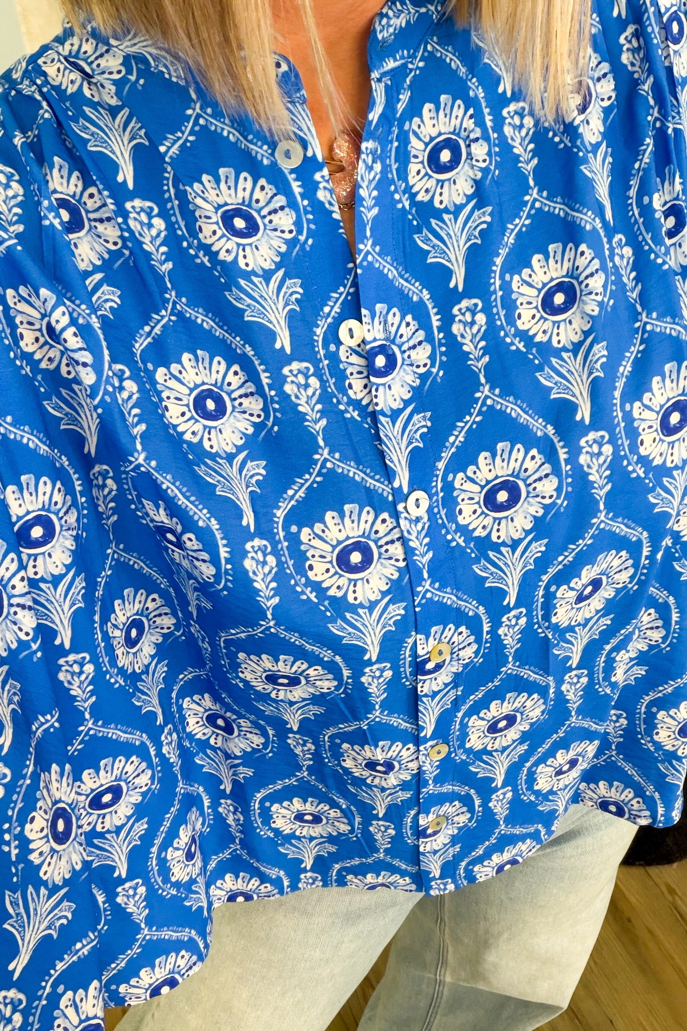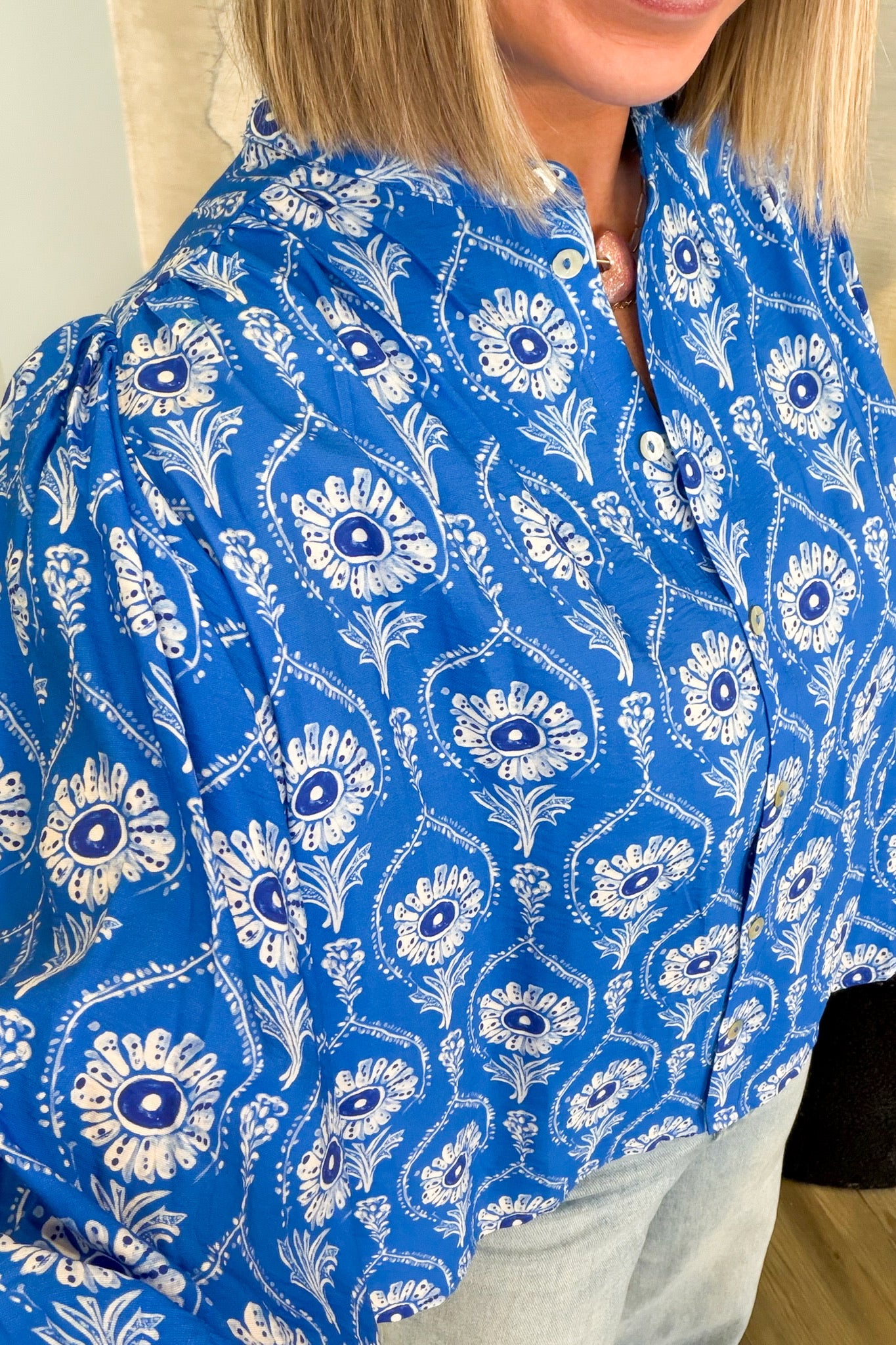 Effortlessly chic and ready for anything, the Leilani Blue Button Down Blouse brings a pop of personality to your everyday rotation. This lightweight beauty features a gorgeous floral print that dances across a crisp blue base, while cuffed sleeves add a polished touch. Button down the front for easy styling versatility—dress it up with tailored trousers or keep it casual with your favorite jeans. Perfect for warm days when you want to look put-together without the fuss.