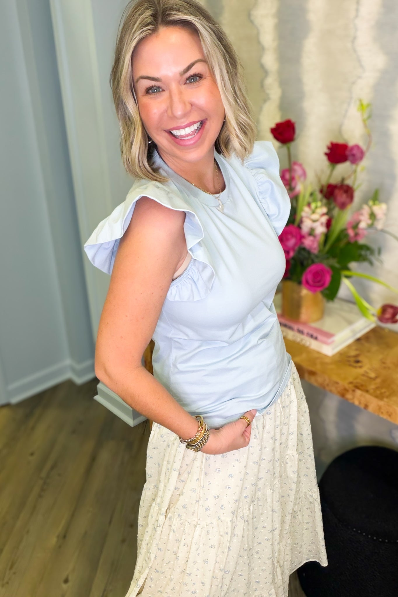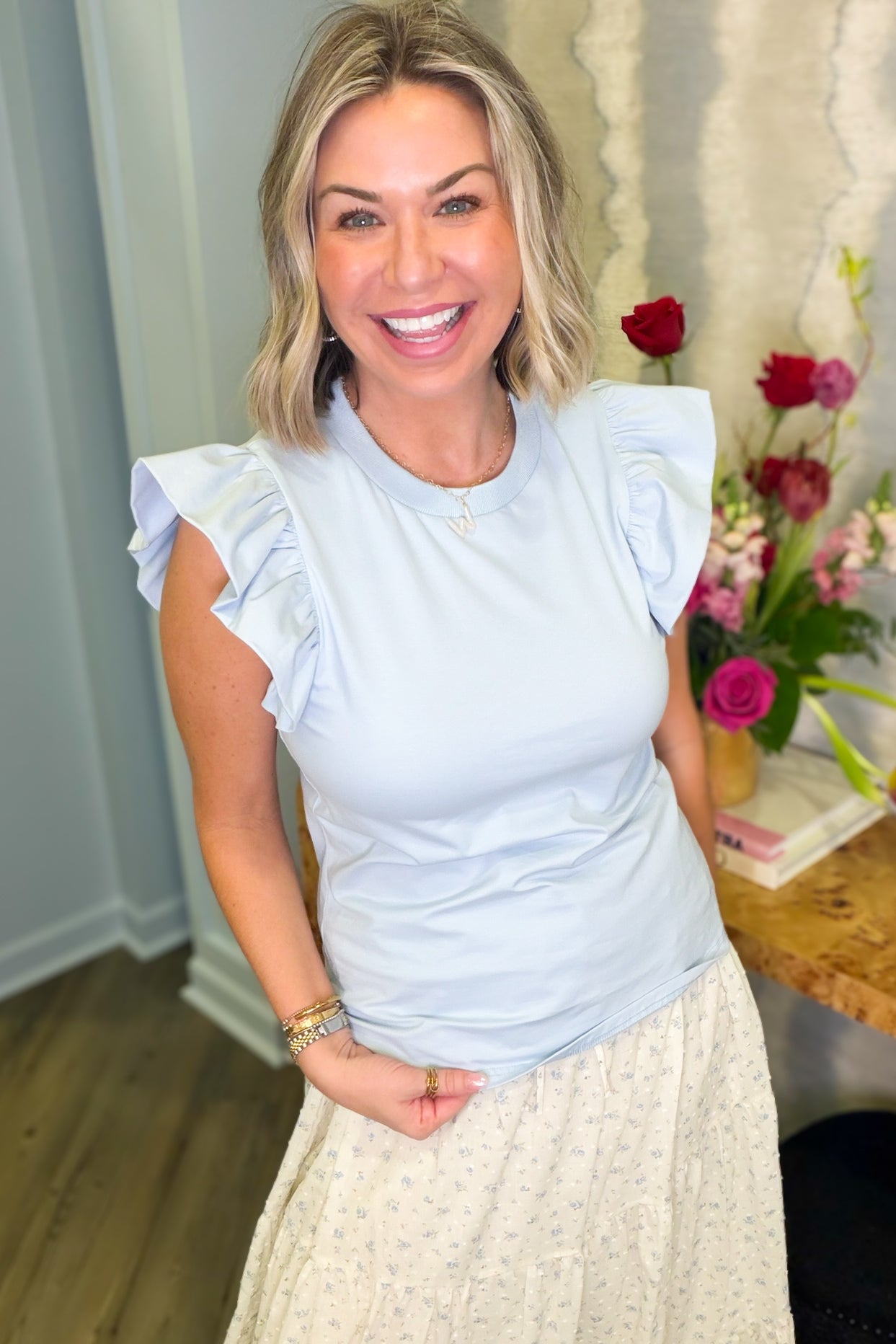 Birdie Blue Ruffle Sleeve Top