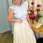 Add a dash of whimsy to your closet with this delightful solid-colored top! Featuring charming ruffled short sleeves that dance with every move, it's the perfect blend of effortless and eye-catching. Slip it on with your favorite bottoms for an instant mood boost—whether you're heading to brunch, running errands, or just living your best casual Friday. Simple, sweet, and undeniably fun.