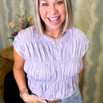 The Romy Short Sleeve Cinched Top is your new go-to for effortless style. This solid short sleeve top features cinched details throughout, creating a flattering silhouette that moves with you. Perfect for dressing up or down, it's the versatile piece every wardrobe needs. Grab yours and get ready to turn heads.