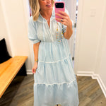 Willow Powder Blue Embrodiered Midi Dress