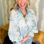 Leslie Floral Light Blue Ruffled Blouse
