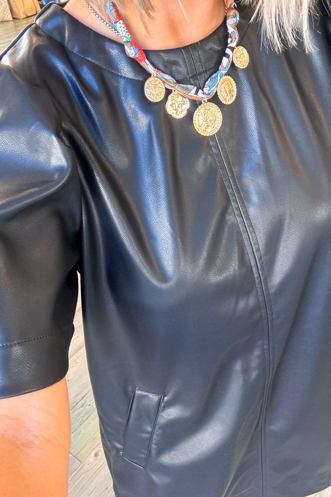 Slip into the Lexie and get ready to turn heads. This sleek black faux leather dress combines edgy sophistication with everyday wearability—plus, those front pockets mean you can actually carry your essentials. The cheeky keyhole button detail on the back adds just the right amount of flirtation. Whether you're dressing it up for a night out or keeping it casual, this versatile piece is your new go-to for looking effortlessly cool.