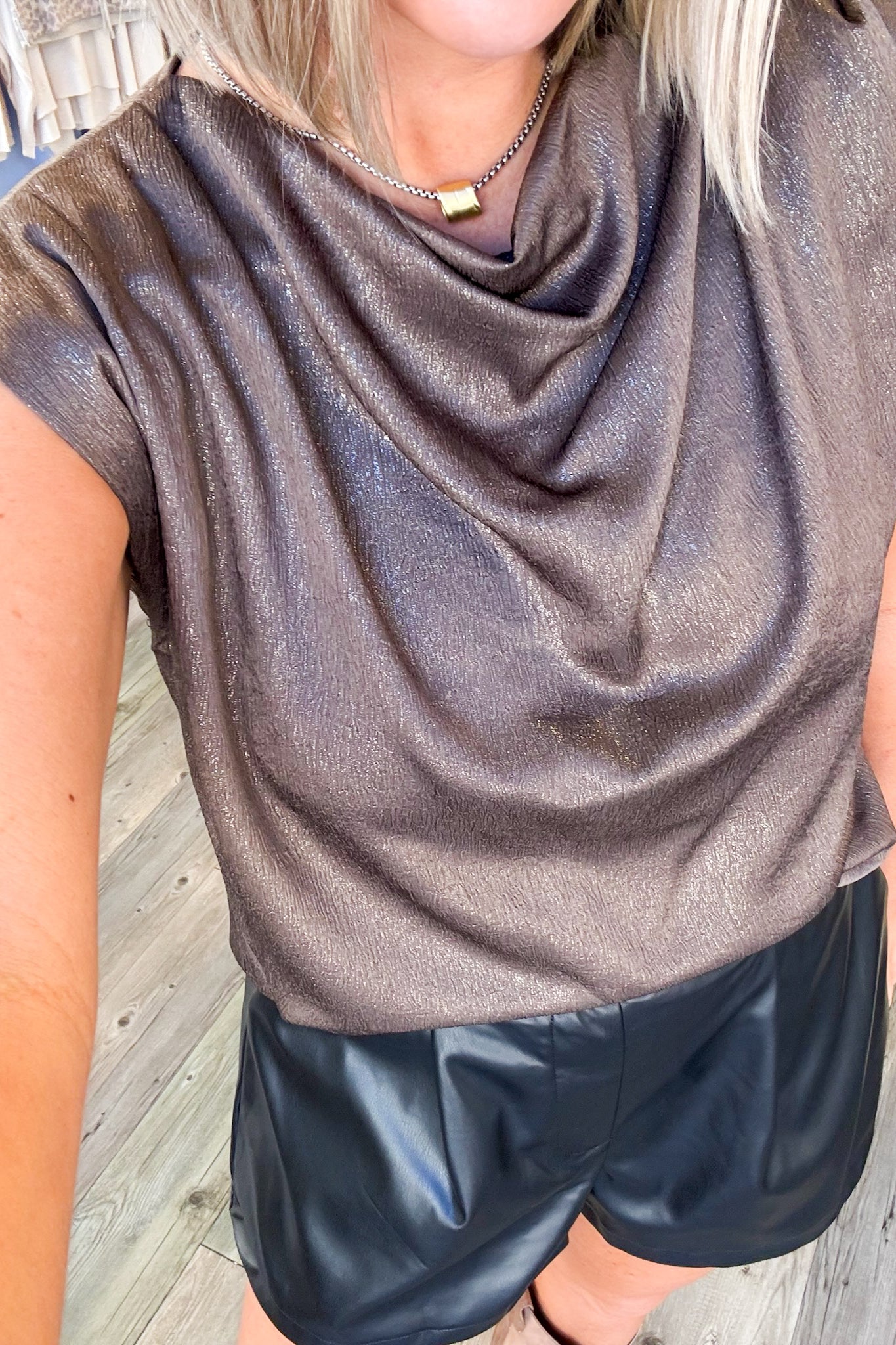 Effortless elegance meets fun with the Jenny Shimmer Top. This lightweight sleeveless wonder features a gorgeous gold shimmer that catches the light with every move. The rich brown base keeps things grounded while the shimmering details add just the right amount of sparkle to elevate your everyday look. Perfect for layering or wearing solo, it's your new go-to piece for looking polished without the fuss.