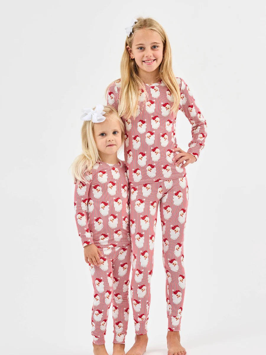 Celebrate the season in cozy style with the Santa Baby Kids Pajama Set. Featuring festive red and white stripes and a playful Santa face pattern, this set includes comfortable pants and a round neck long sleeve top that fits true to size. Perfect for snuggling up or holiday mornings, these pajamas bring warmth and cheerful spirit to your little one’s sleepwear.