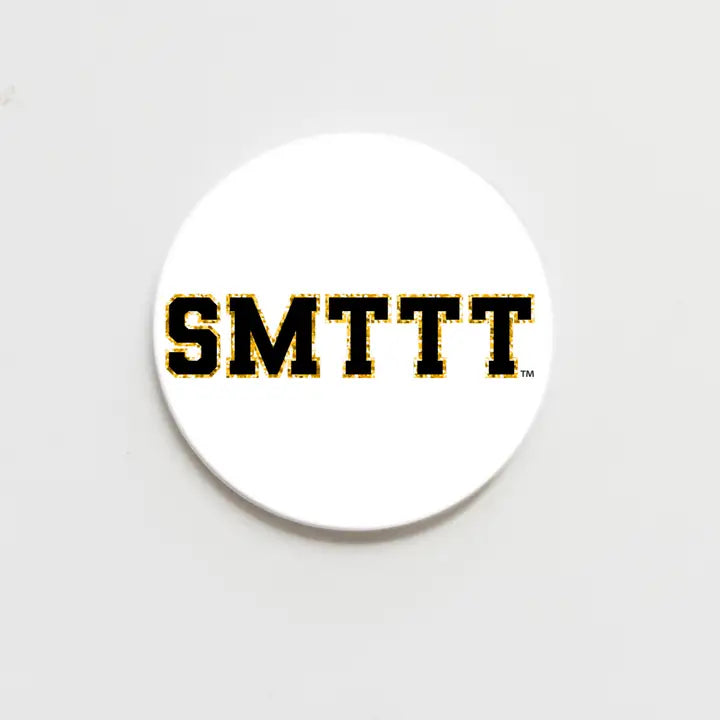 Show your support with the SMTTT Game Day Button. This white button features bold SMTTT lettering, making it a simple yet striking accessory for game days. Its lightweight design ensures comfortable wear, helping you cheer on your team with style and spirit. Perfect for fans who want to showcase their enthusiasm effortlessly.