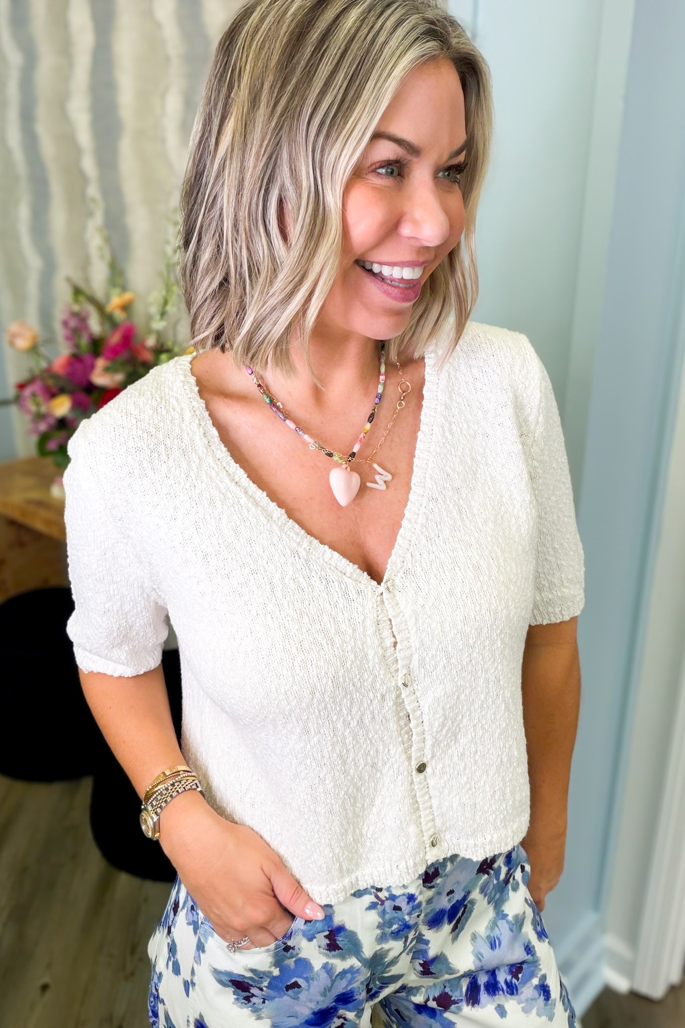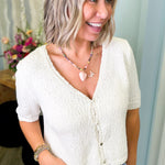 Effortlessly chic meets cozy comfort with the Reagan Cream V-Neck Sweater Top. This soft, true-to-size essential features a flattering v-neckline and charming button details that add just the right amount of personality. The creamy off-white hue pairs beautifully with everything in your wardrobe, making it the perfect go-to layer for casual days or dressed-up moments. Slip it on and feel the difference quality craftsmanship makes.