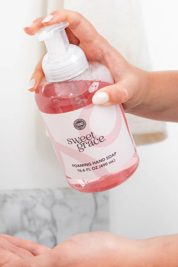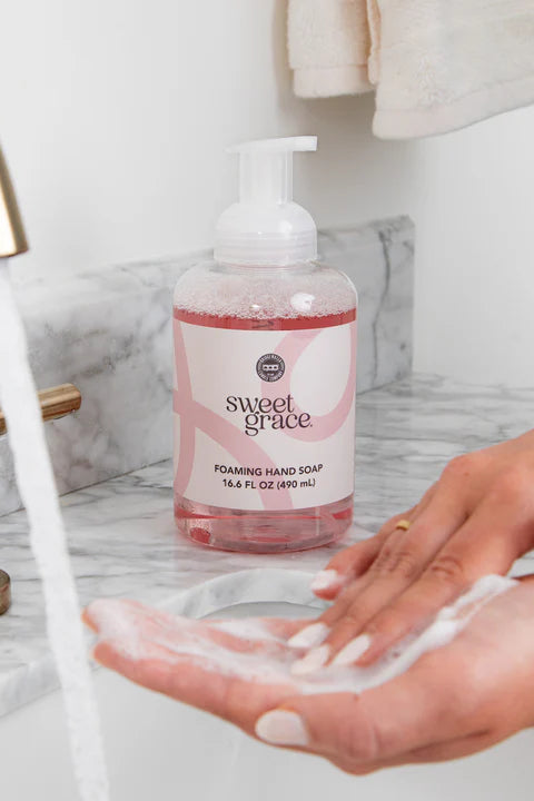Indulge in Sweet Grace Foaming Hand Soap! Infused with moisturizing aloe, it cleanses and pampers your skin, leaving hands soft and refreshed with every wash.