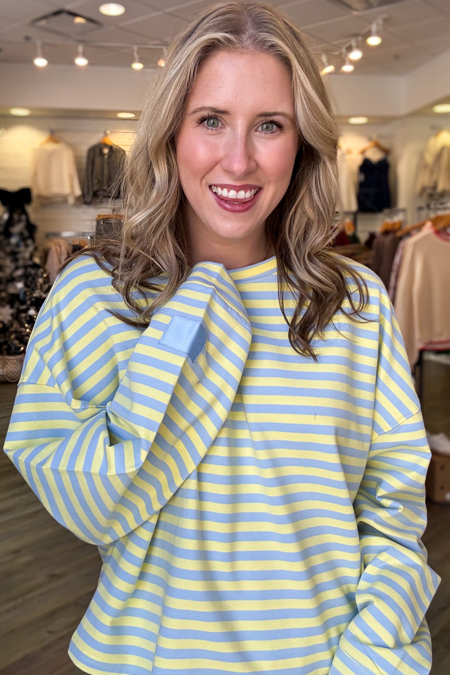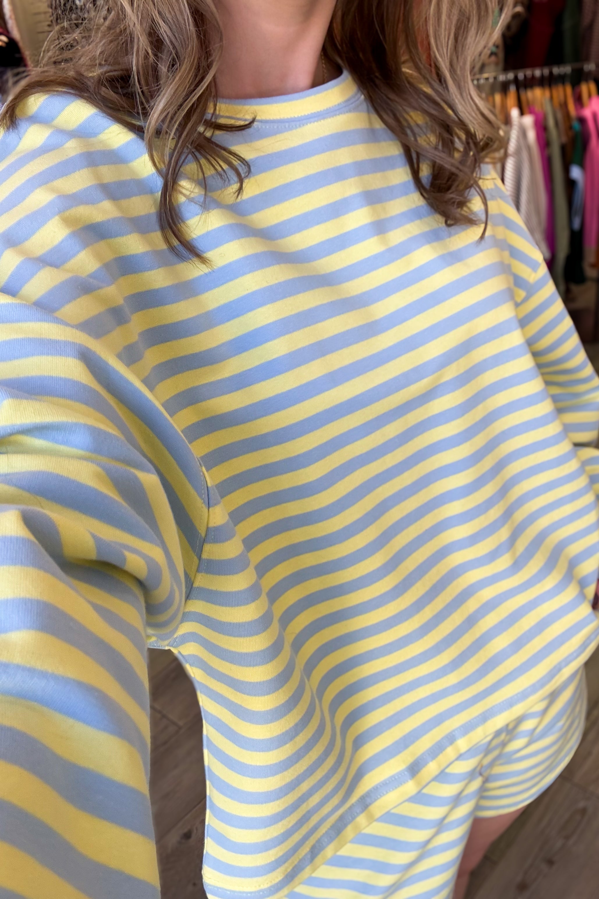 Experience ultimate comfort with the Terri Striped Set, featuring a loose fit design in soft terry cloth. The vibrant blue and yellow stripes bring a cheerful, relaxed vibe, perfect for lounging at home or casual outings. Designed for ease and breathability, this set keeps you cozy while allowing freedom of movement throughout your day.
