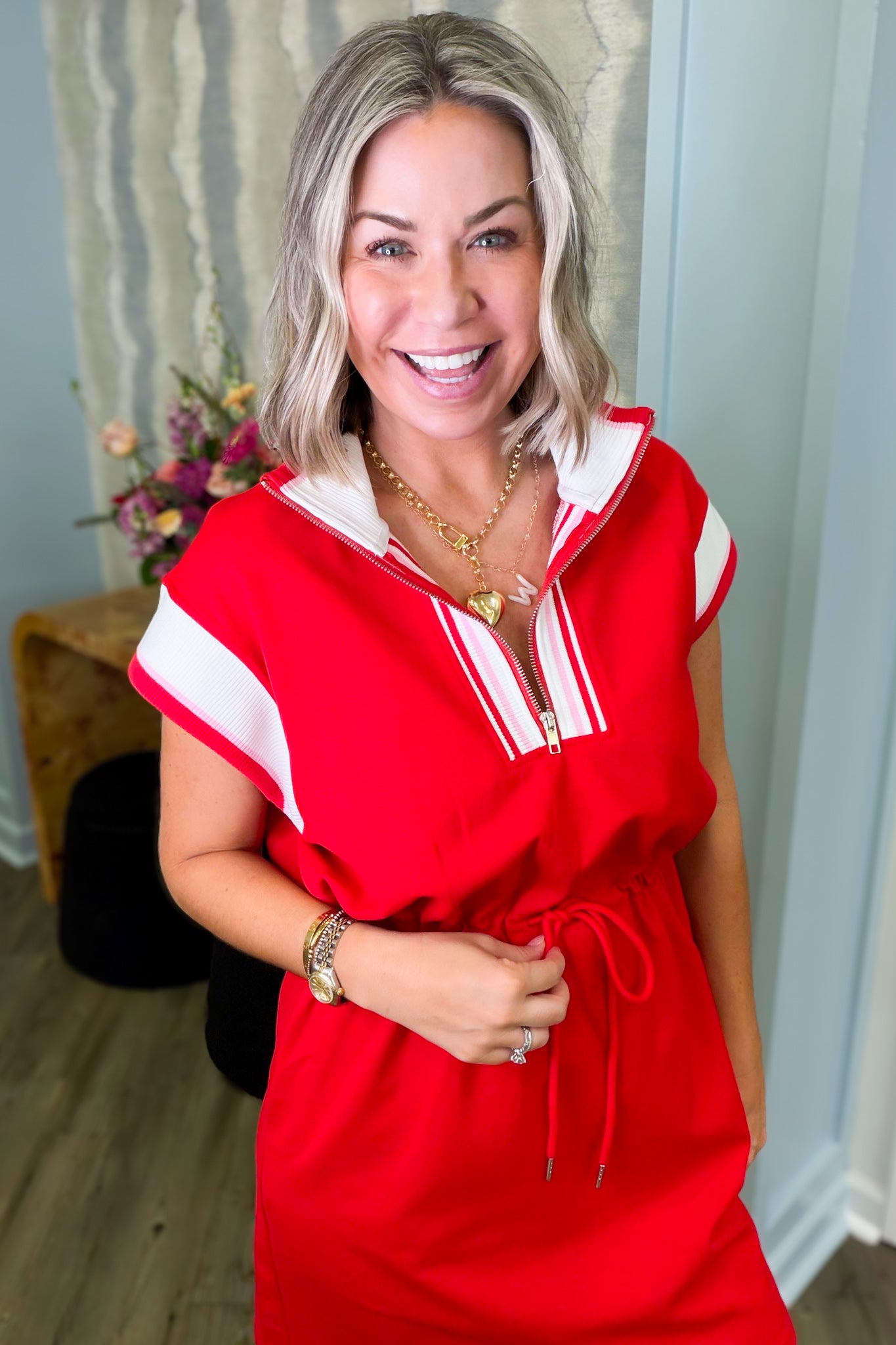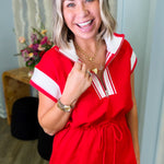 Tiffany Red Half Zip Drawstring Knit Mini Dress