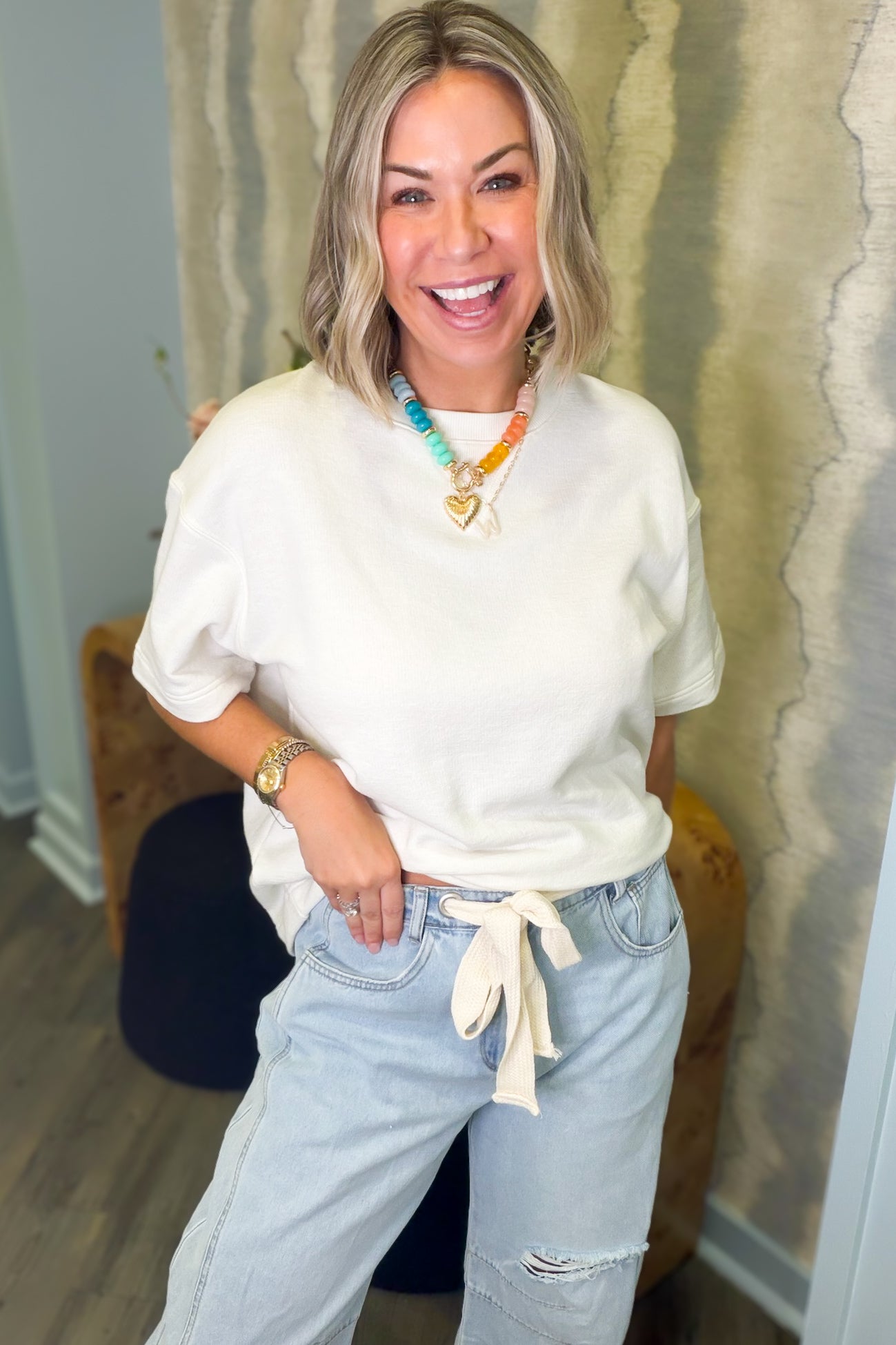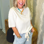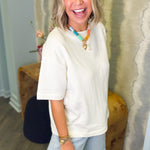 Throw on this Jamie White Terry Top and embrace that effortless, laid-back vibe. Crafted from soft terry cloth, it's the perfect piece for days when comfort takes the crown. With a relaxed fit that lets you move freely and a true-to-size cut, you'll slip into pure coziness without any fuss. Whether you're lounging at home or running errands around town, this white essential keeps things cool, casual, and undeniably chic.