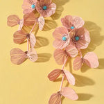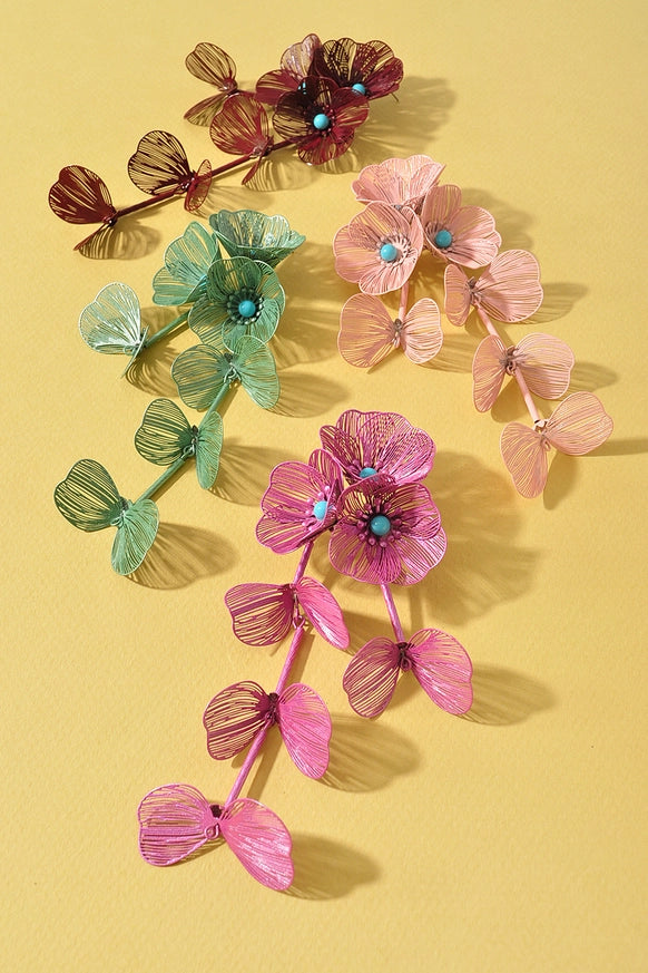 Delicate flower drop earrings featuring turquoise beading and charming botanical details. Available in soft mint and blush pink, each pair brings a pop of color and whimsical elegance to any look. Perfect for adding a fresh, nature-inspired touch to your everyday style or special occasions.