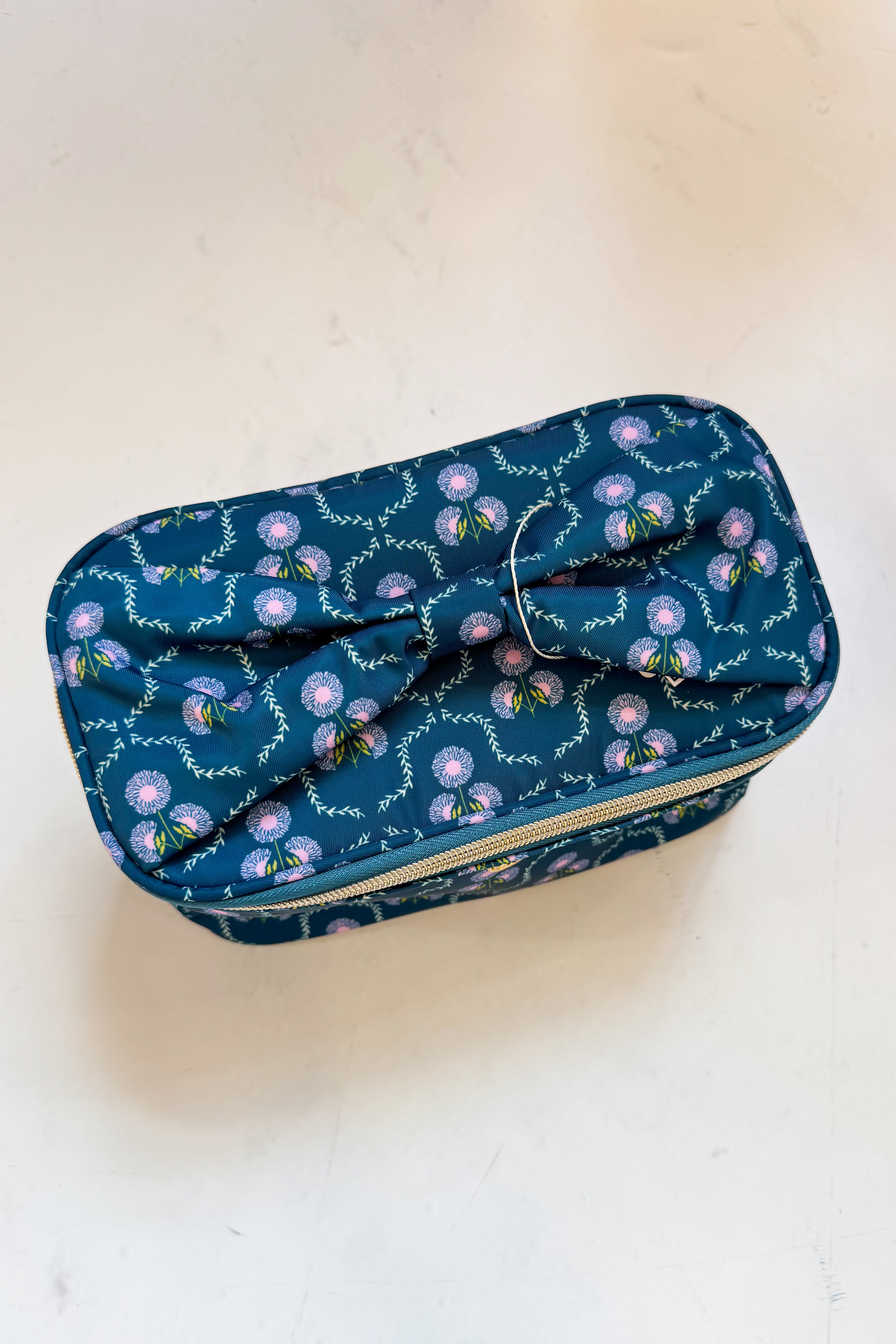 Meet our Kiss and Makeup Bag, the compact version of our ultra-glam favorite! Featuring a chic printed exterior, solid interior, and a stylish oversized bow that doubles as a convenient carry handle, this smaller bag is perfect for your essential beauty items. Ideal for travel or quick touch-ups on the go, it’s designed to keep your must-haves organized while looking fabulous!